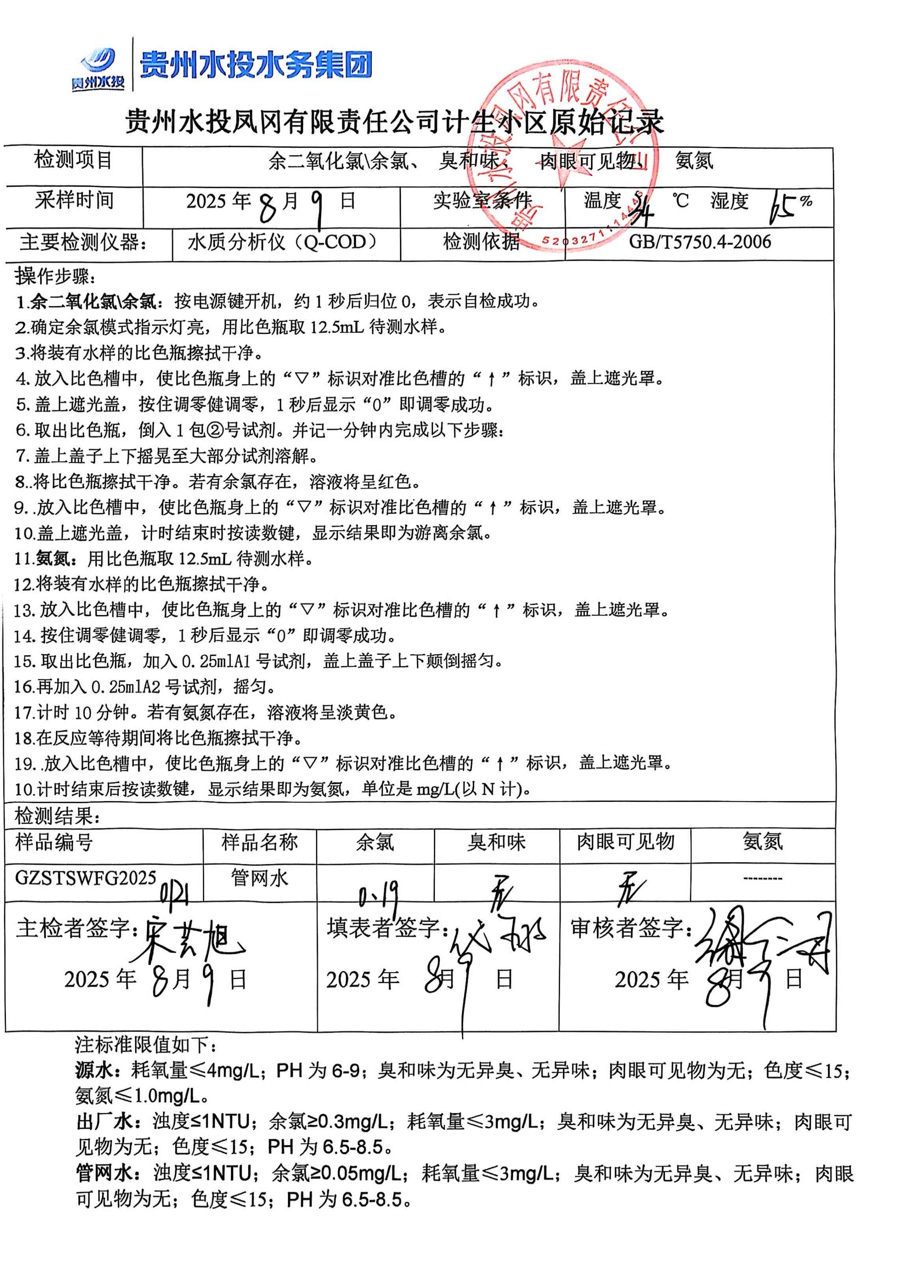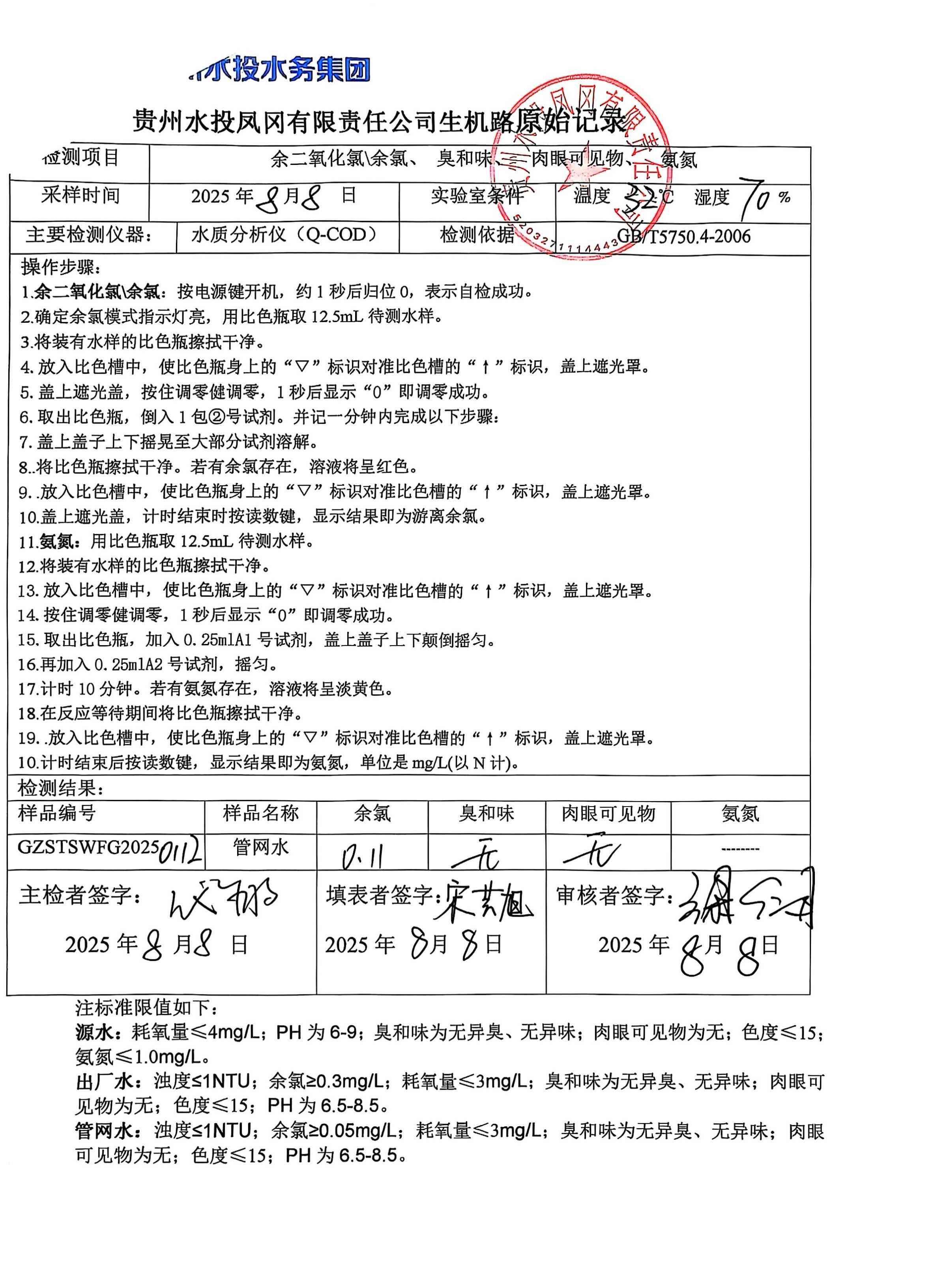 2025年8月二次供水泵房自检记录