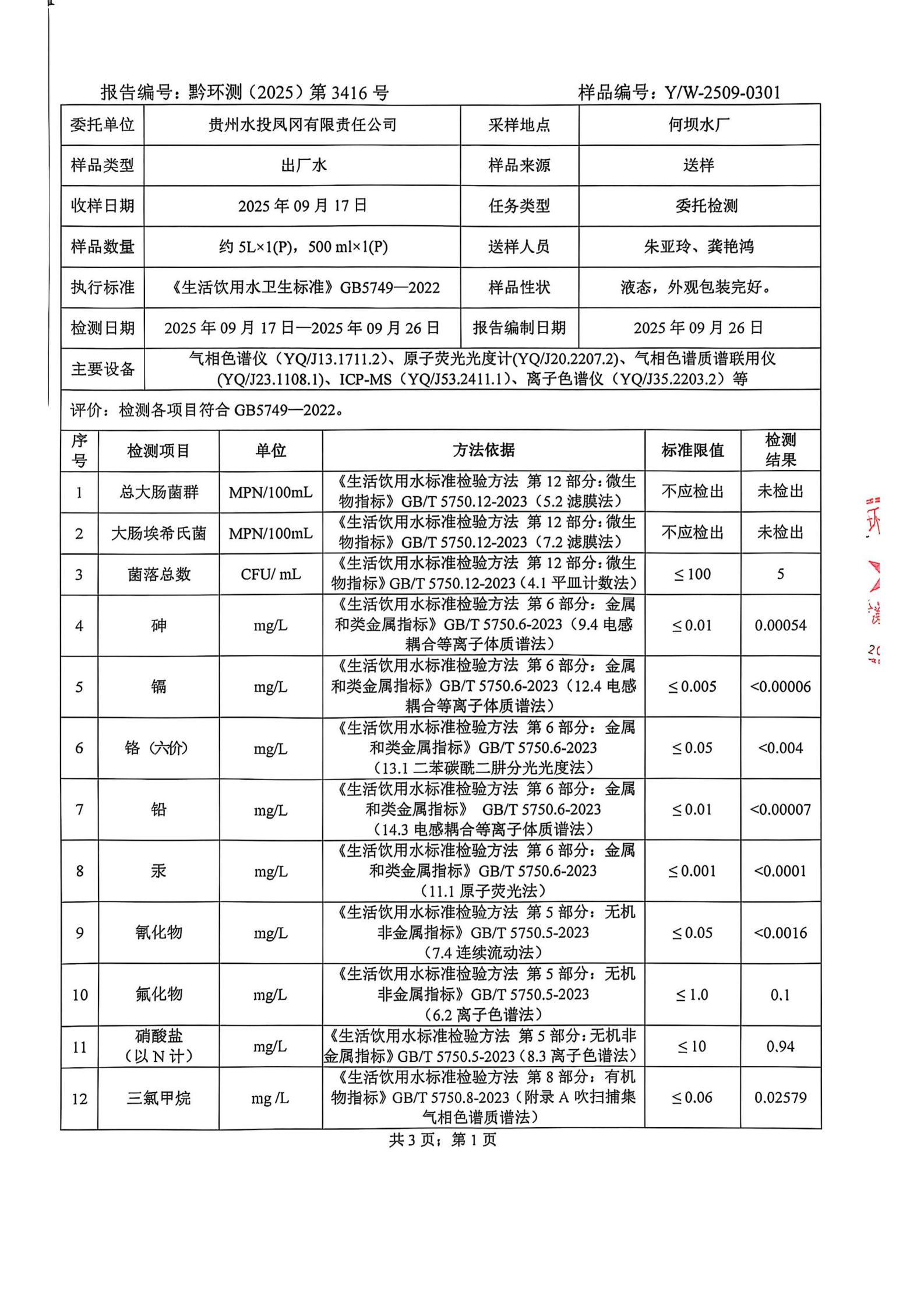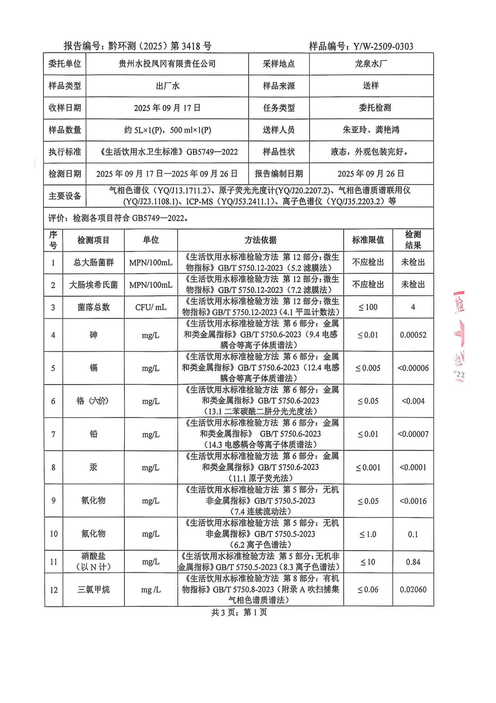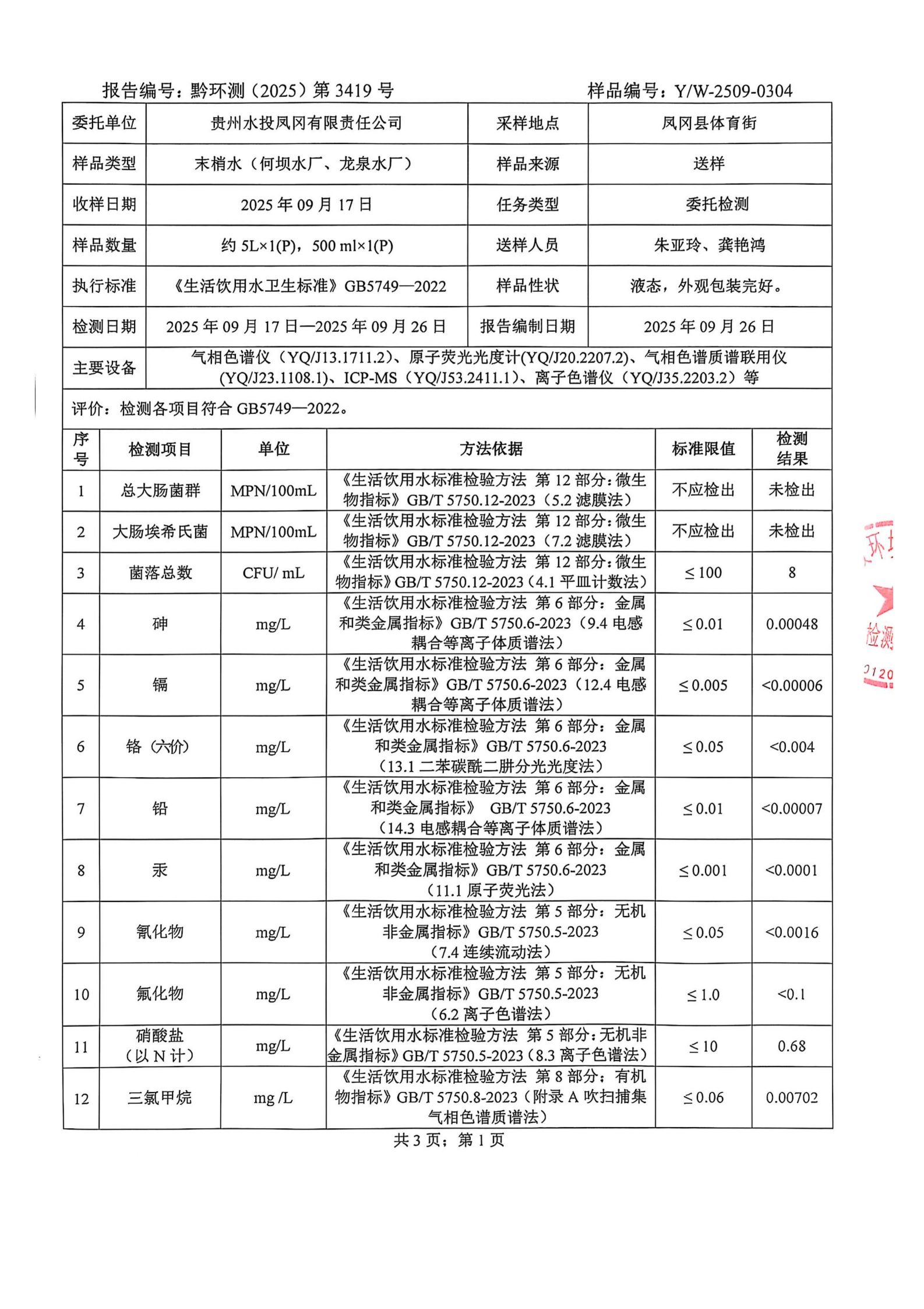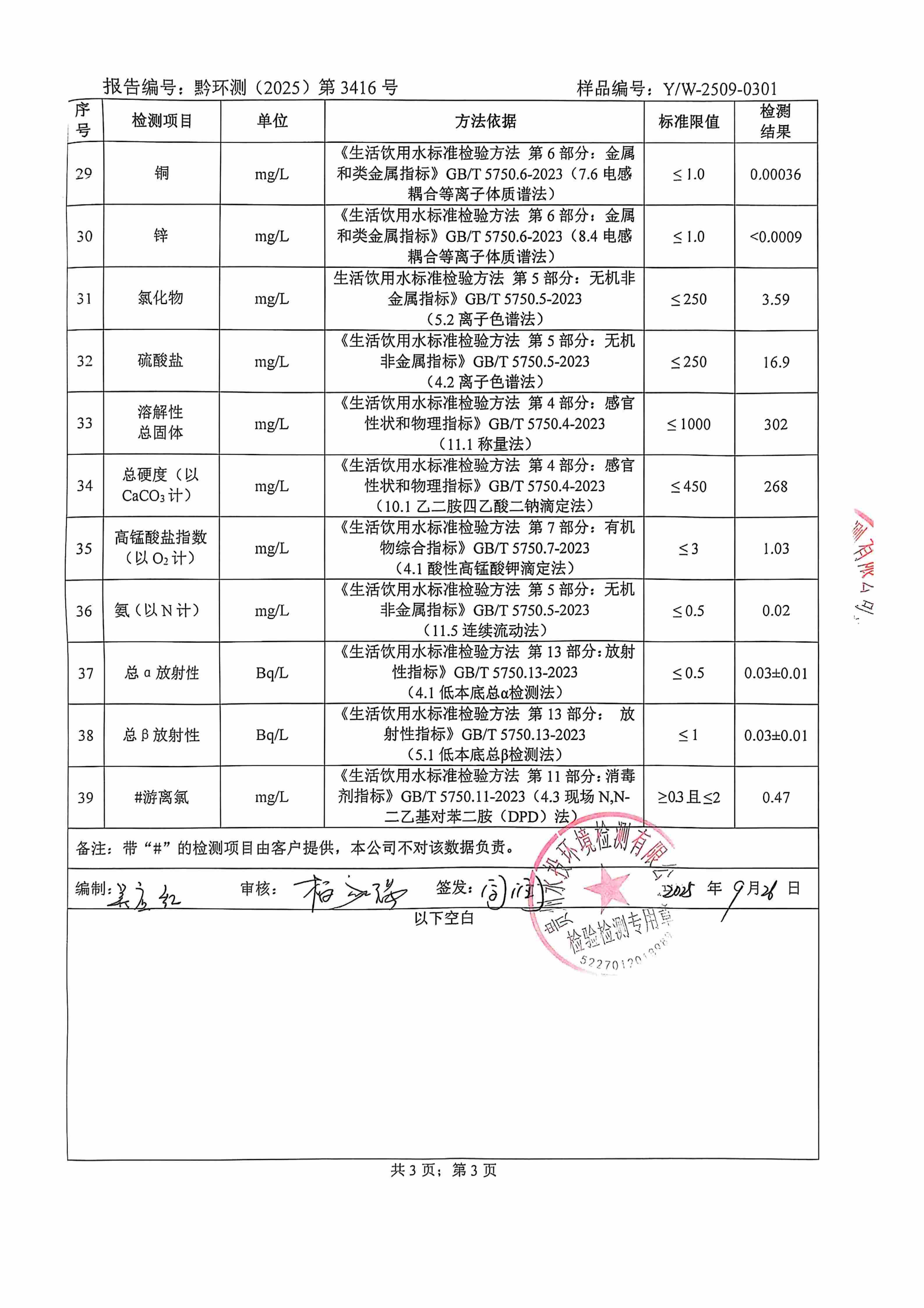 2025年9月城区水质检测报告