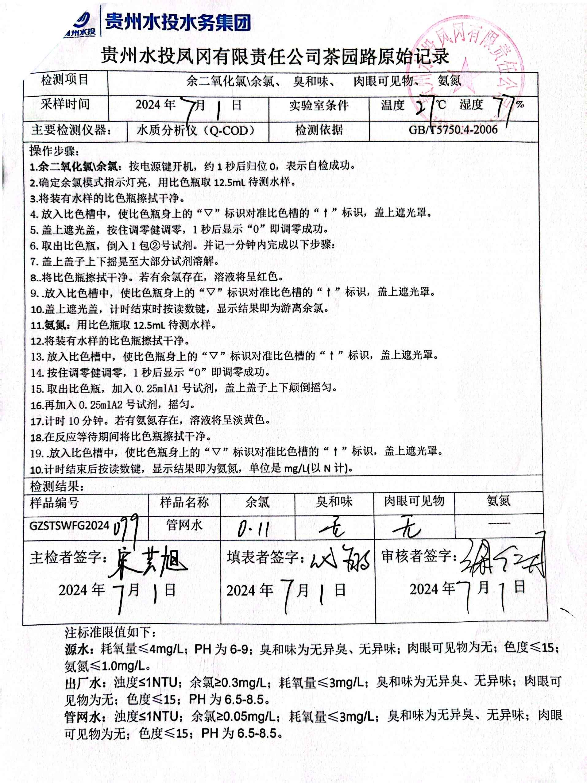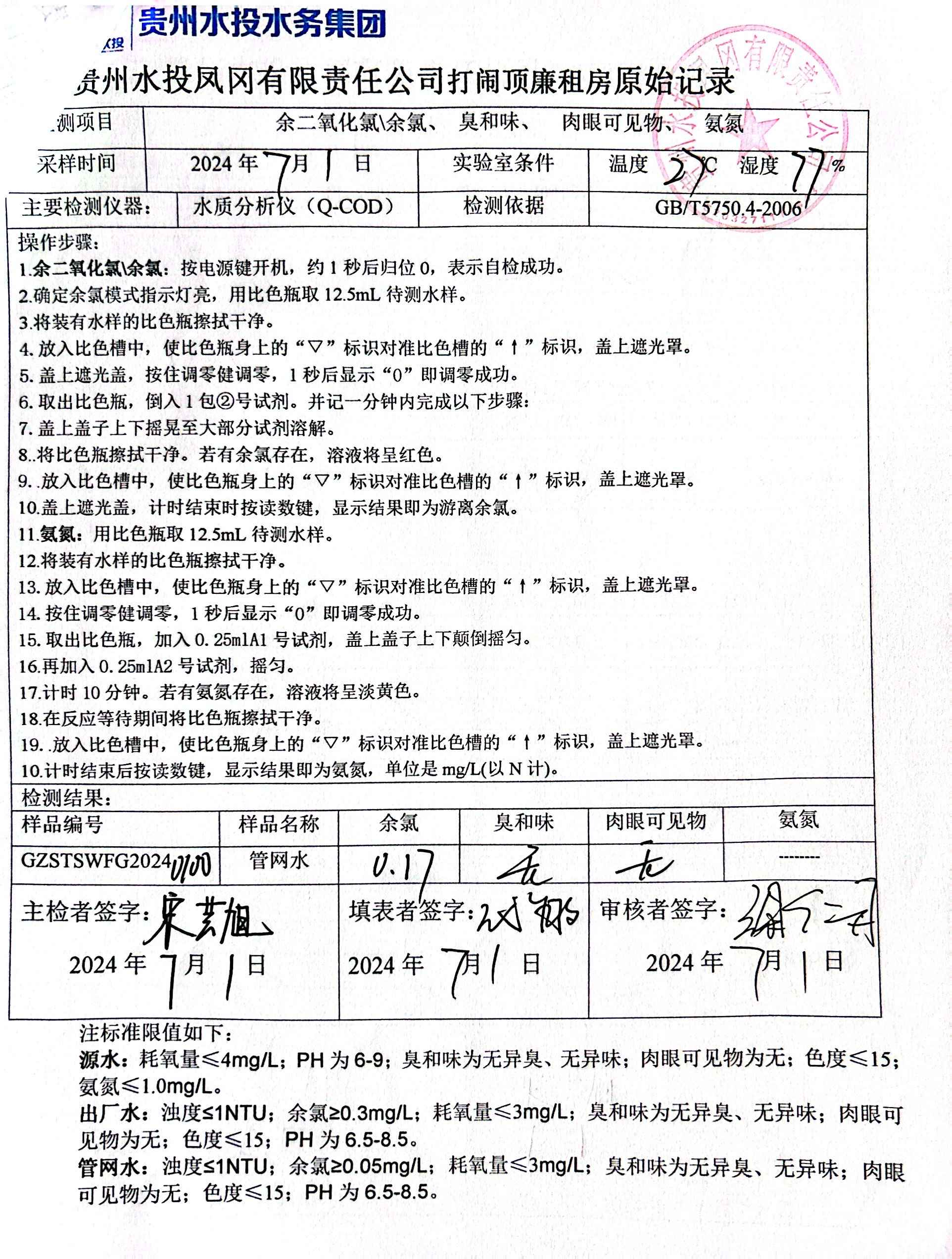 2024年7月二次供水泵房自检记录