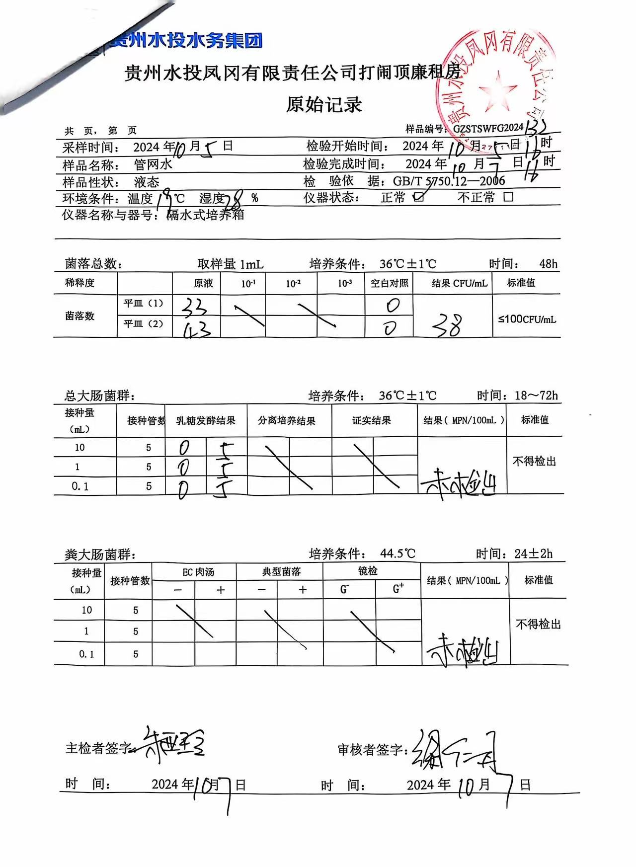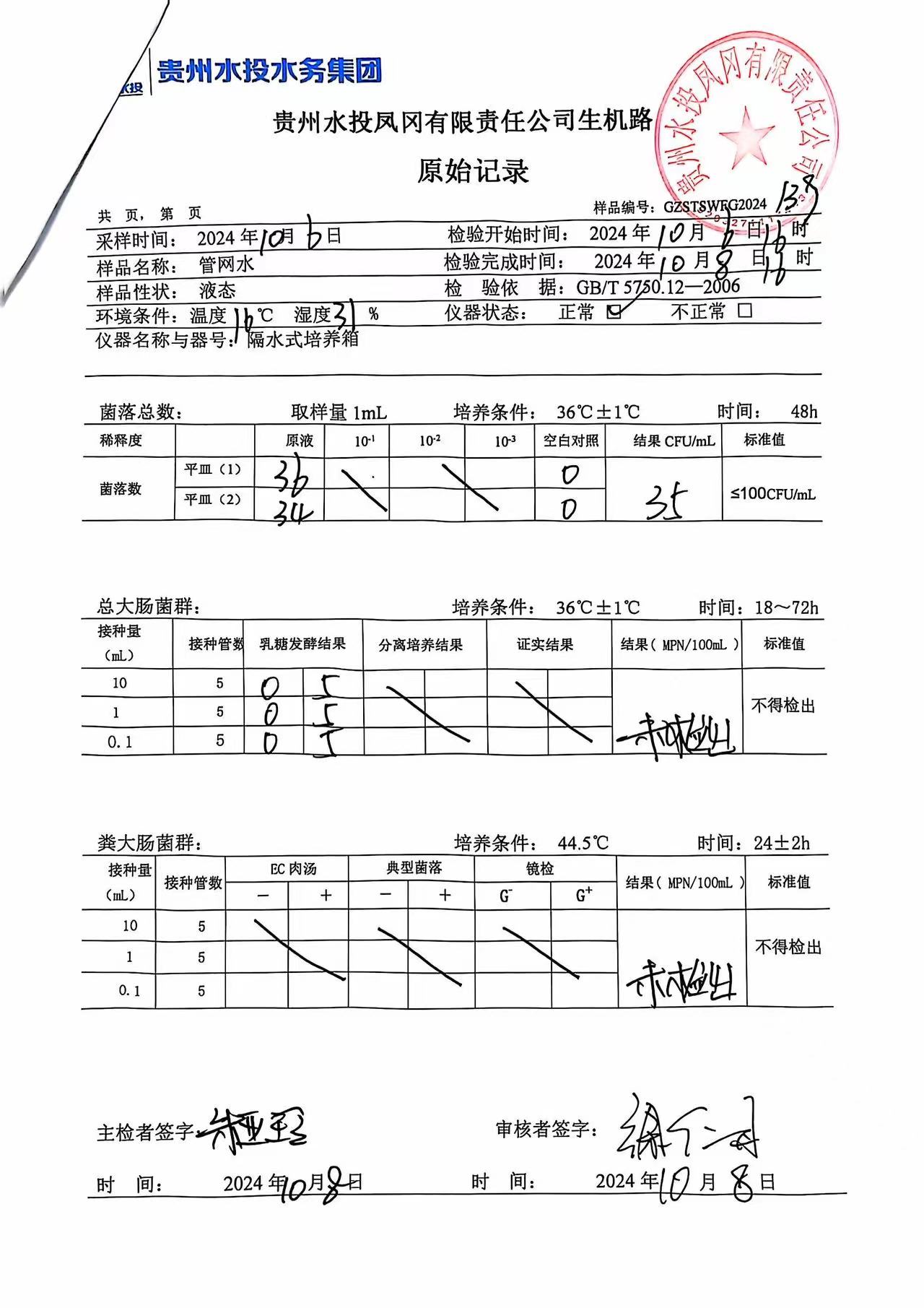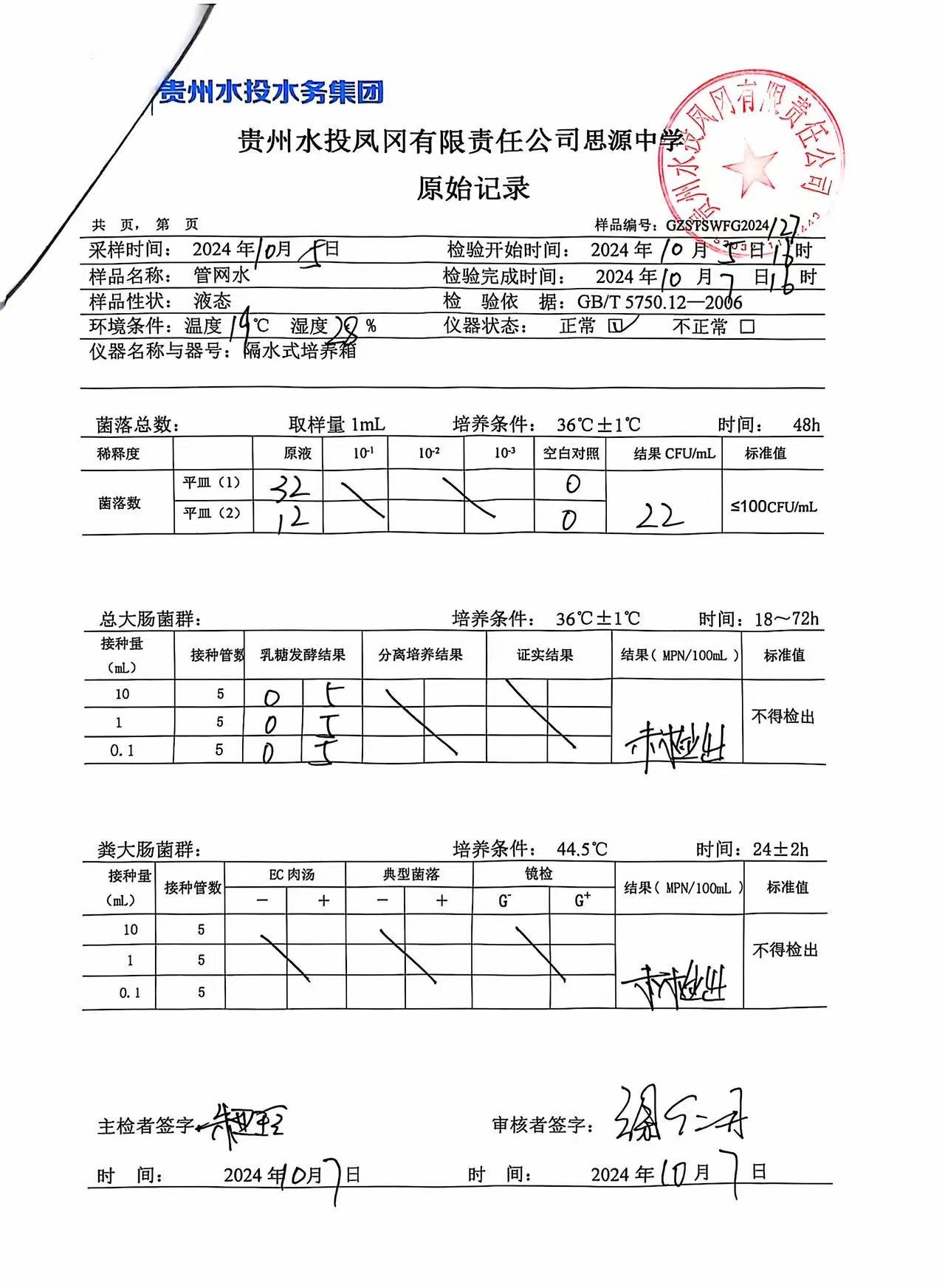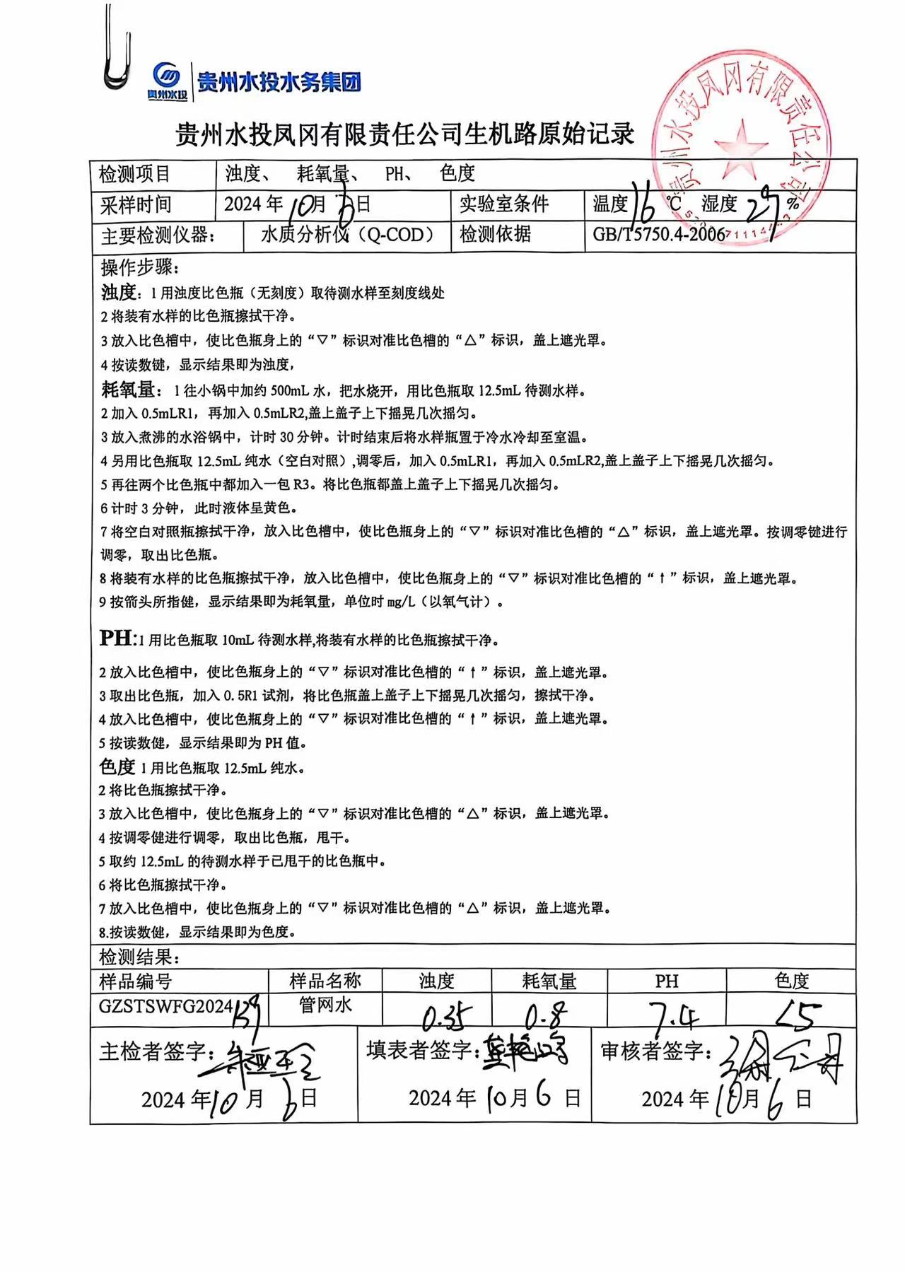 2024年10月城区水质检测报告