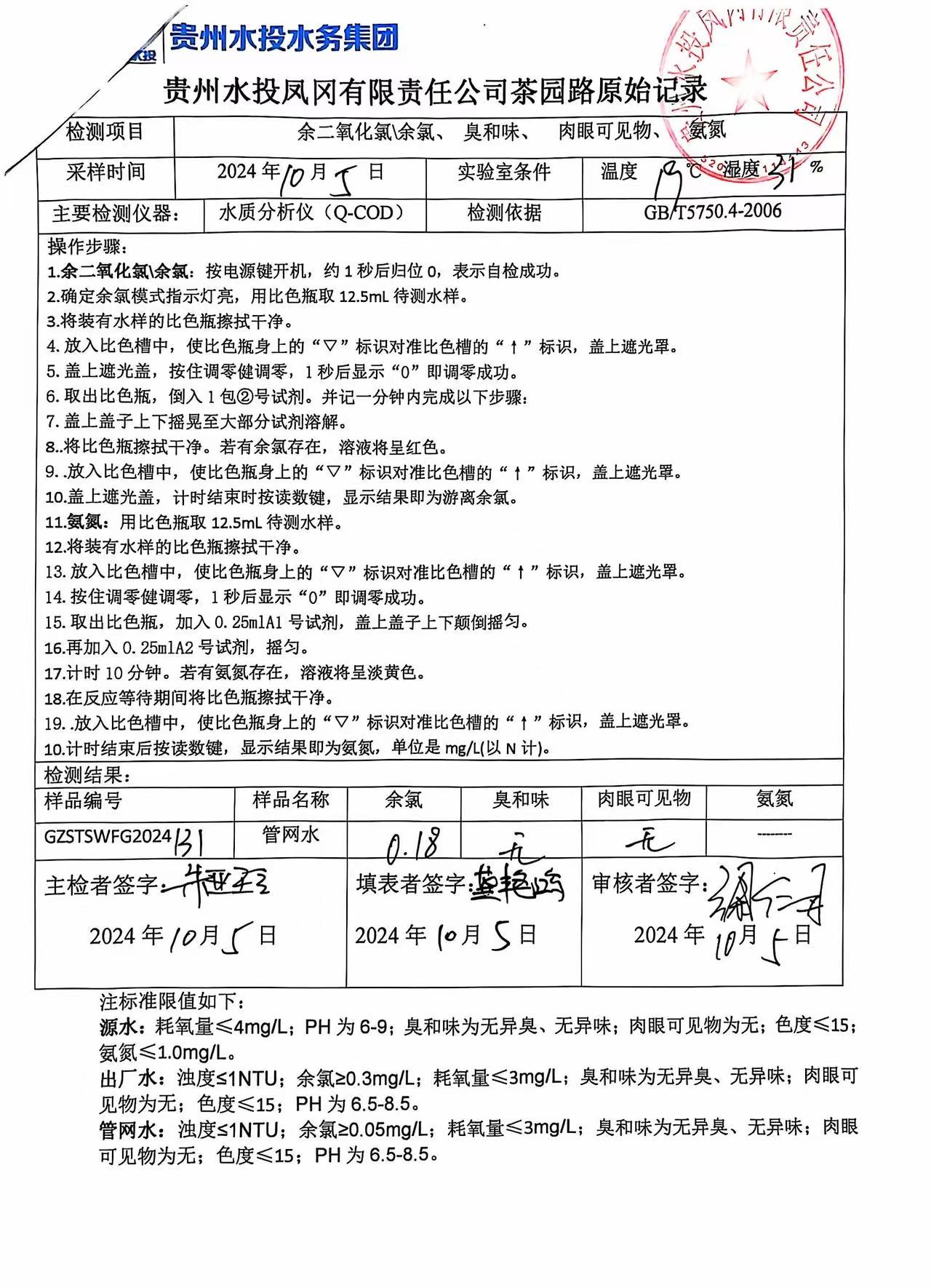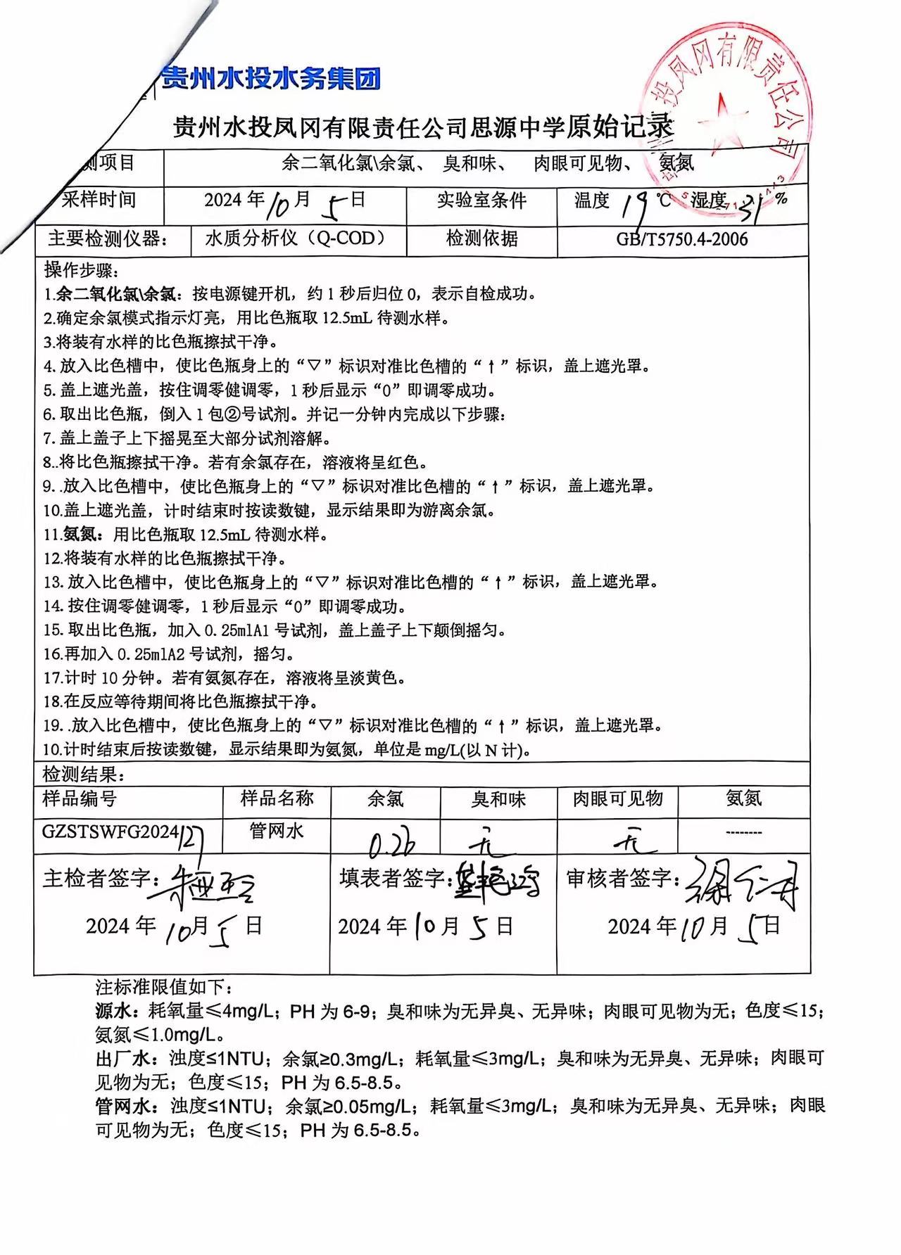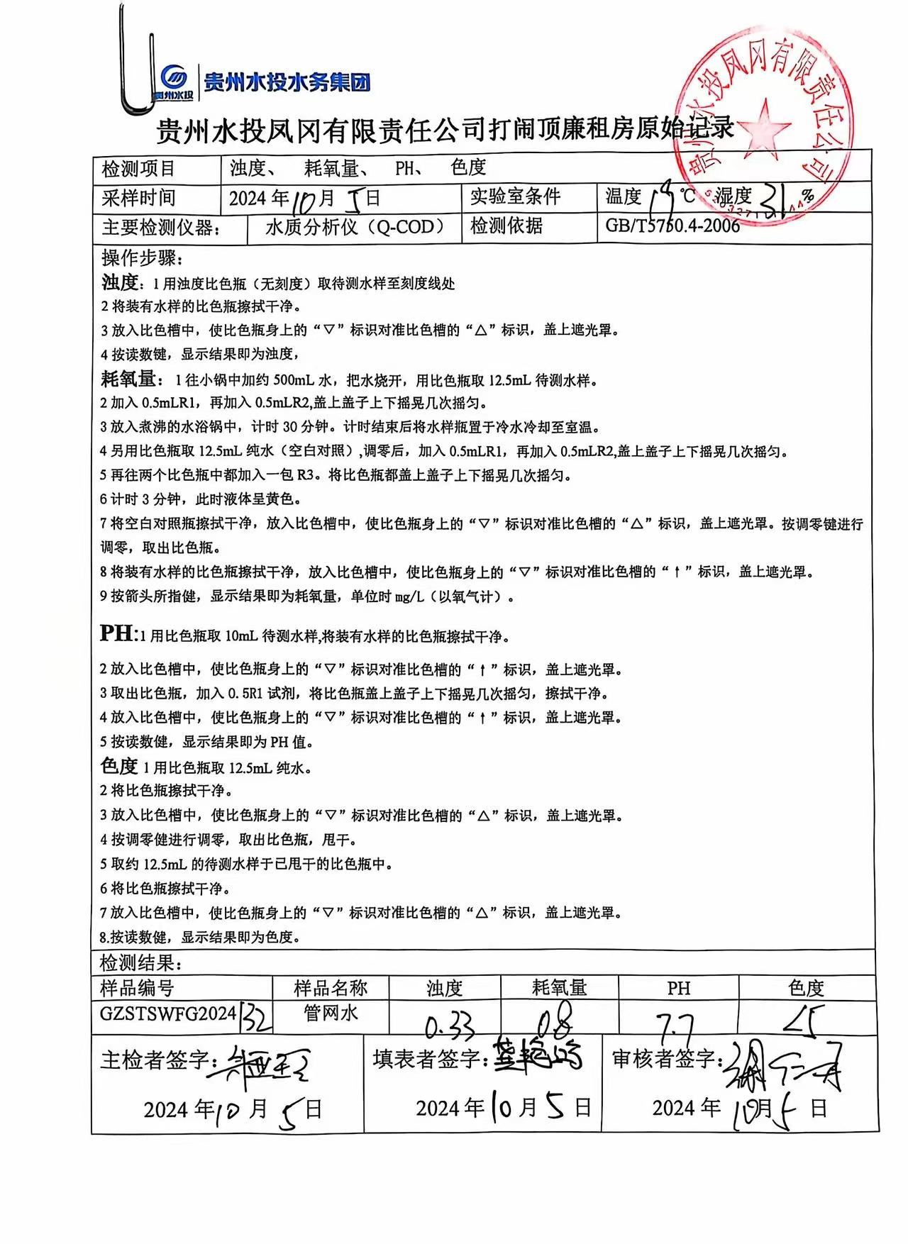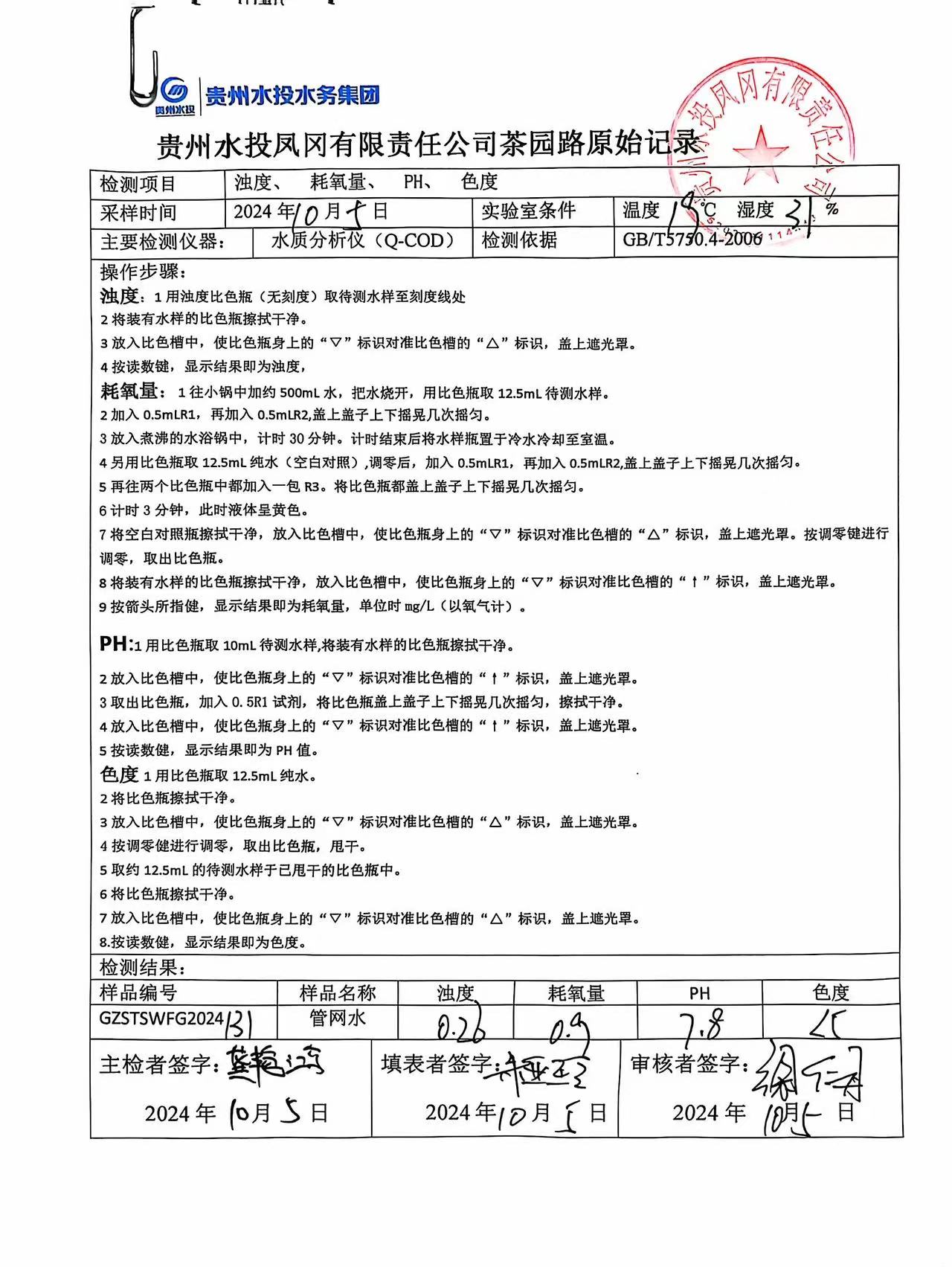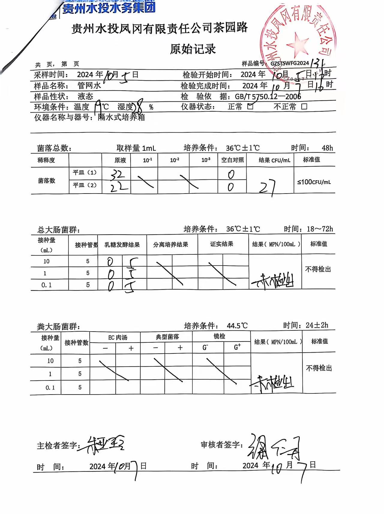 2024年10月城区水质检测报告