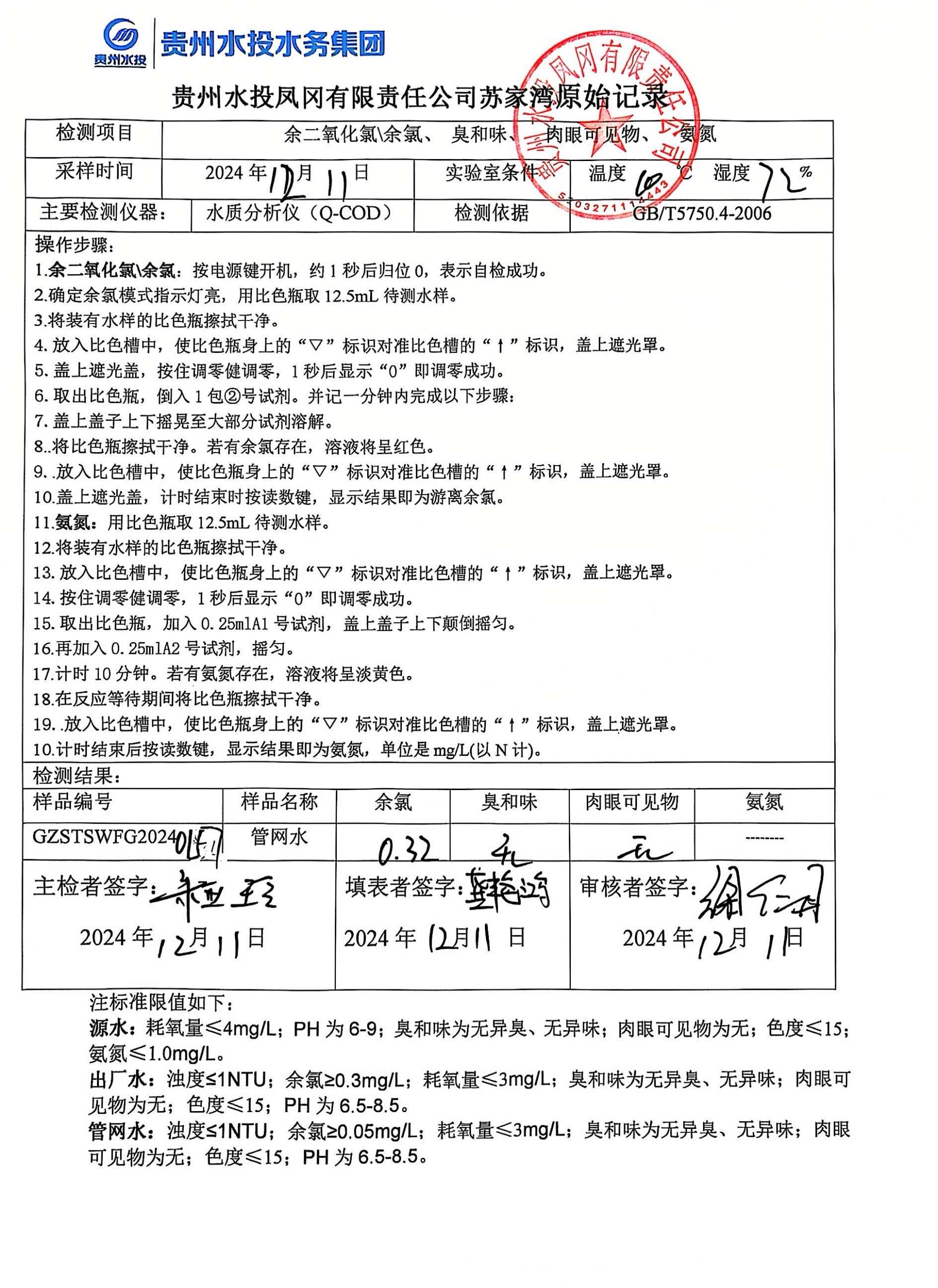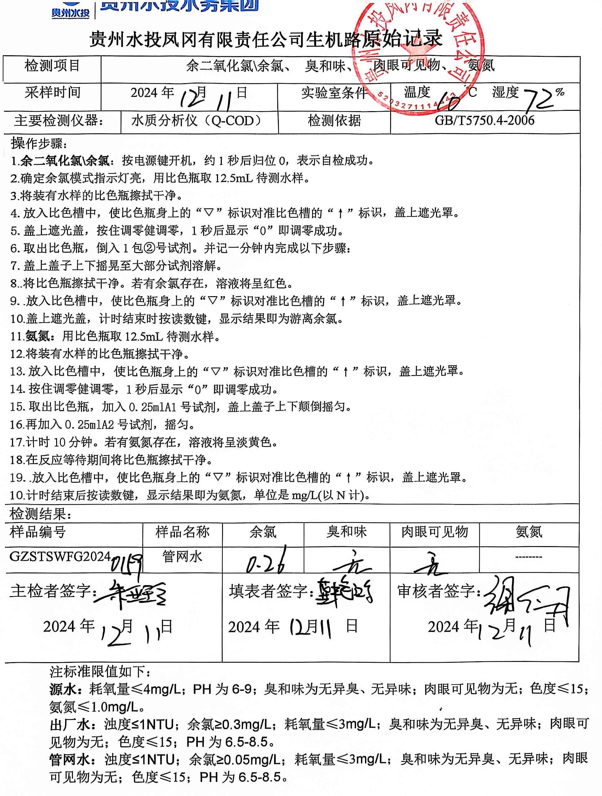2024年12月二次供水泵房自检记录