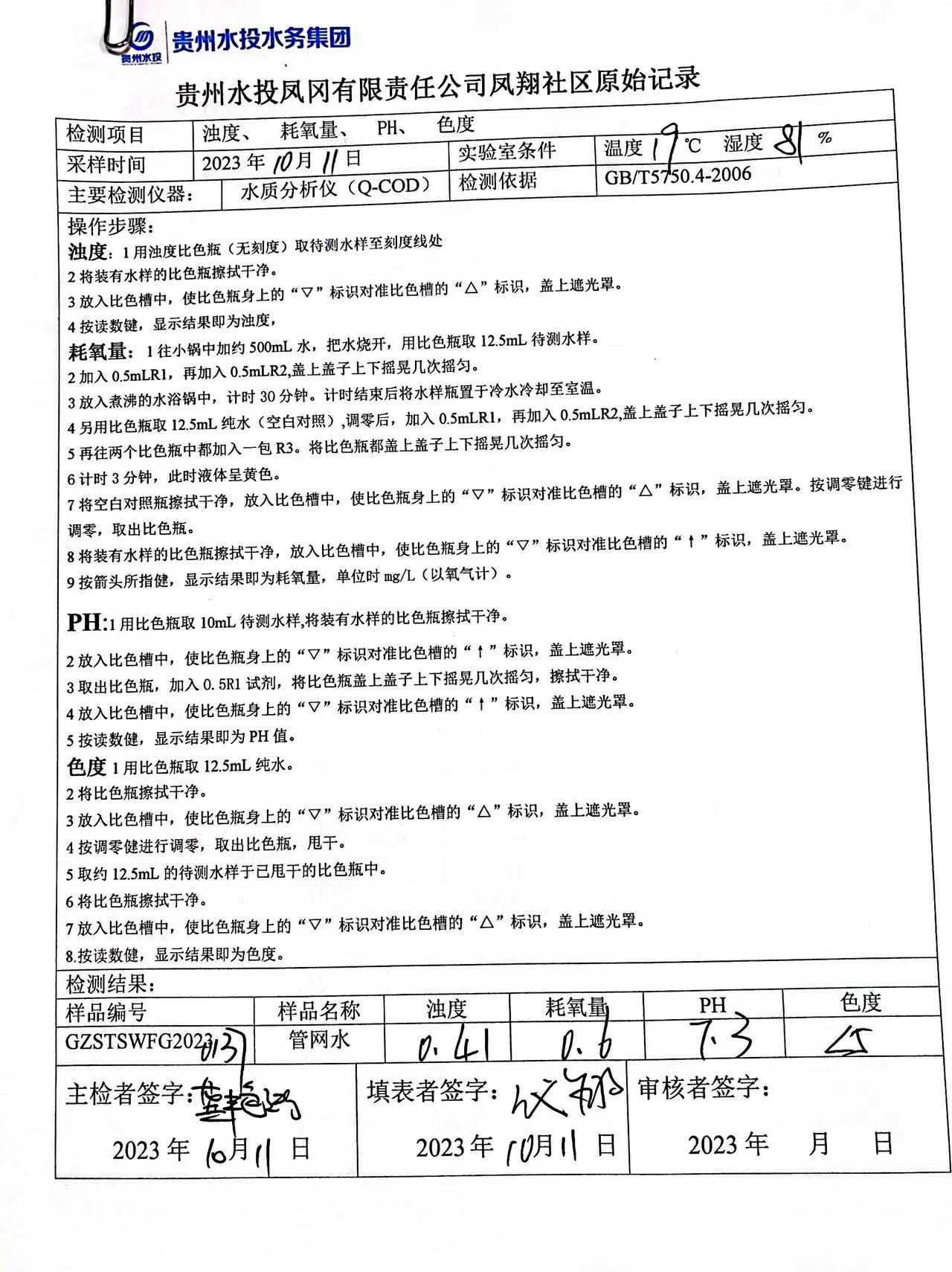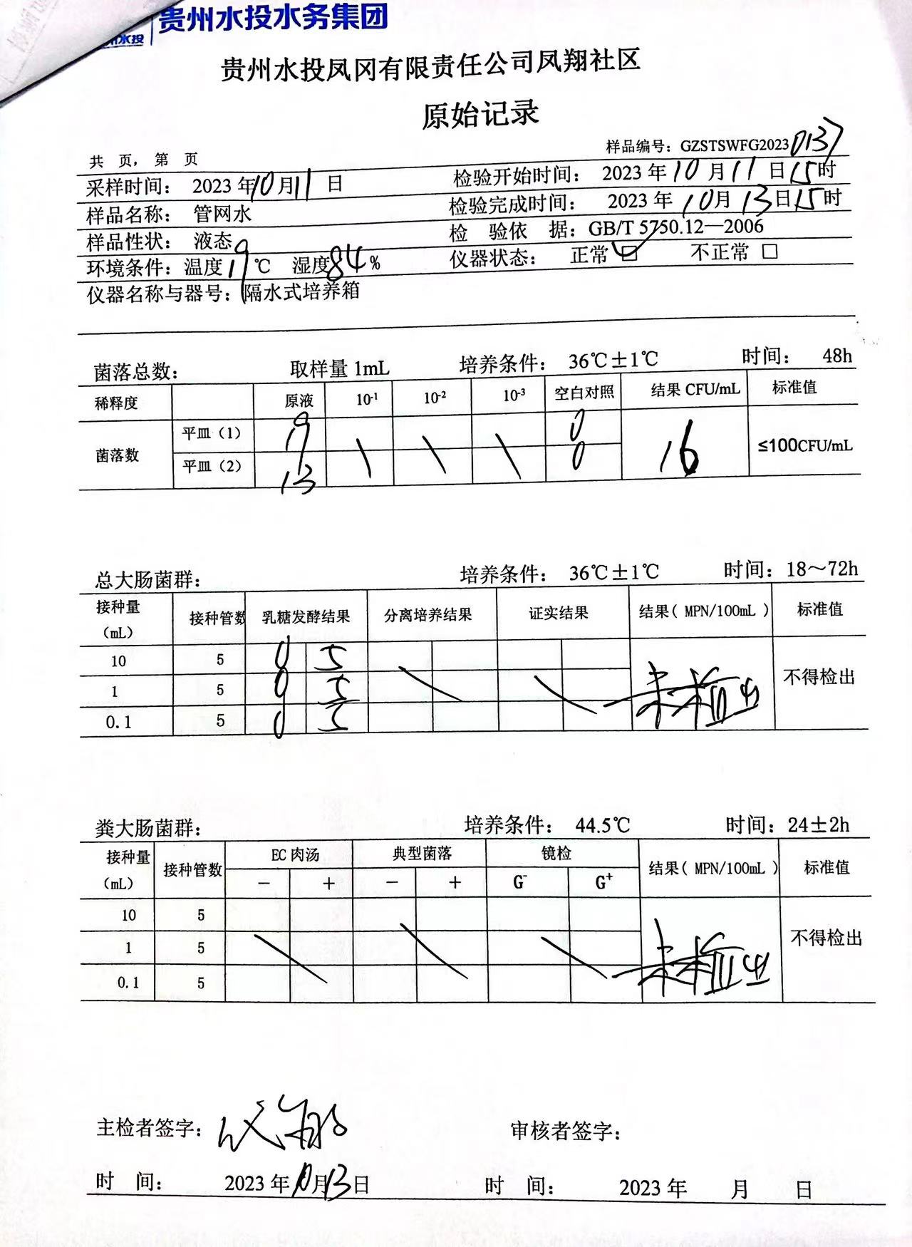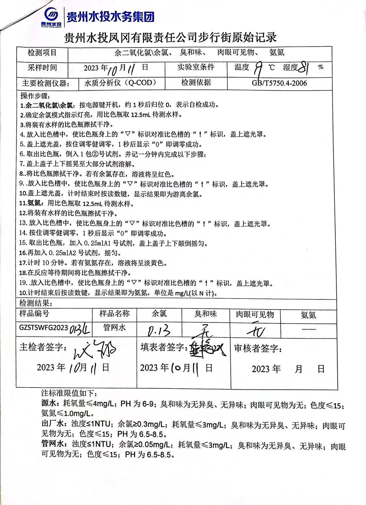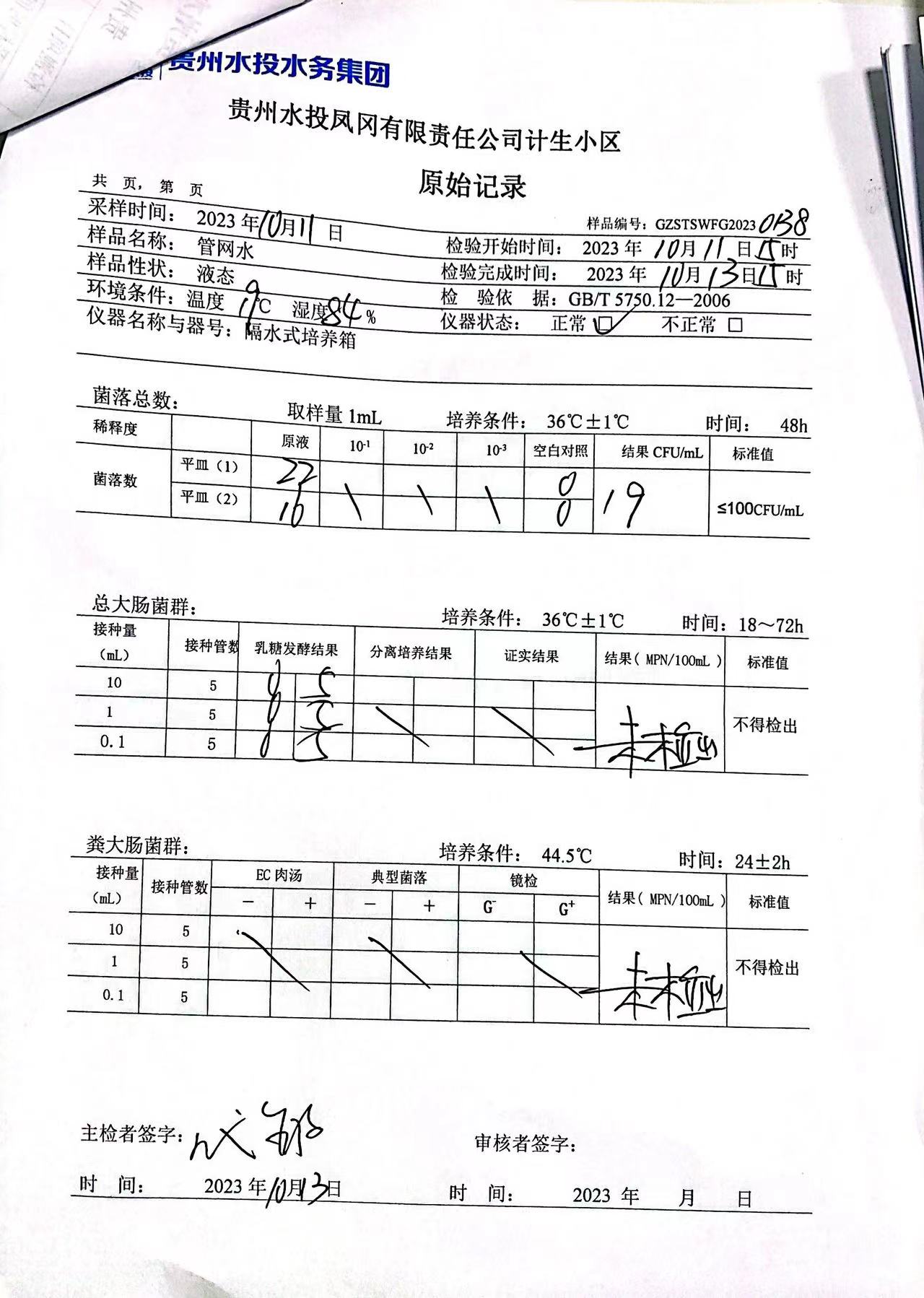 2023年10月城区水质检测报告