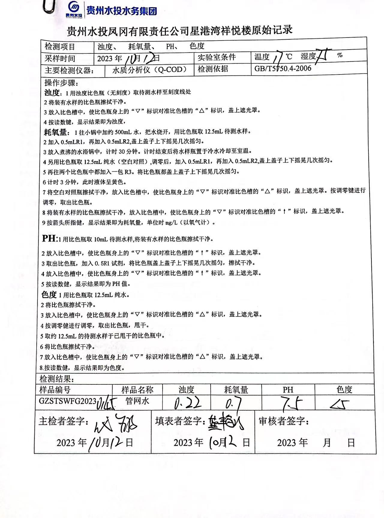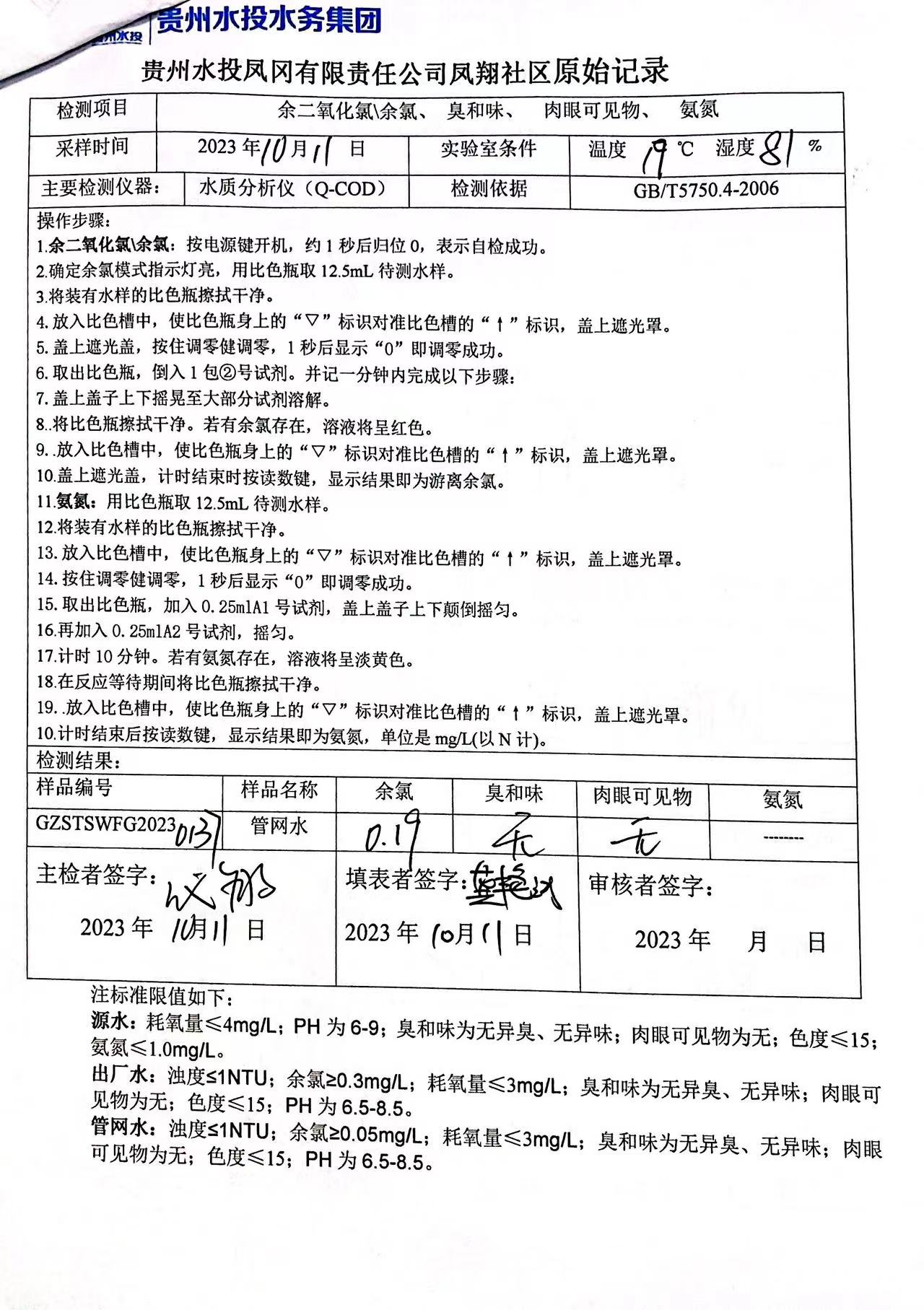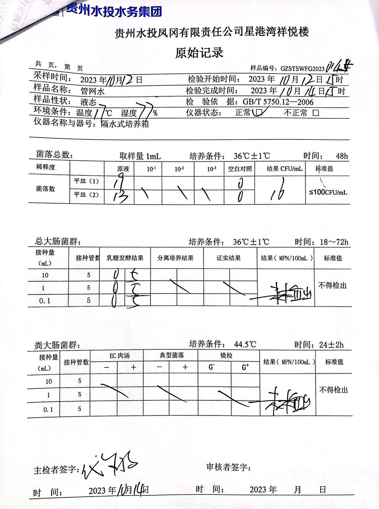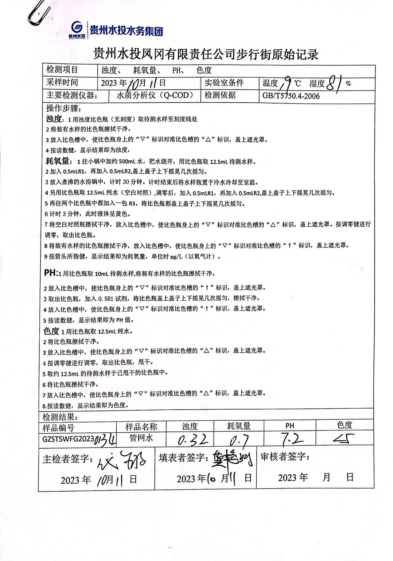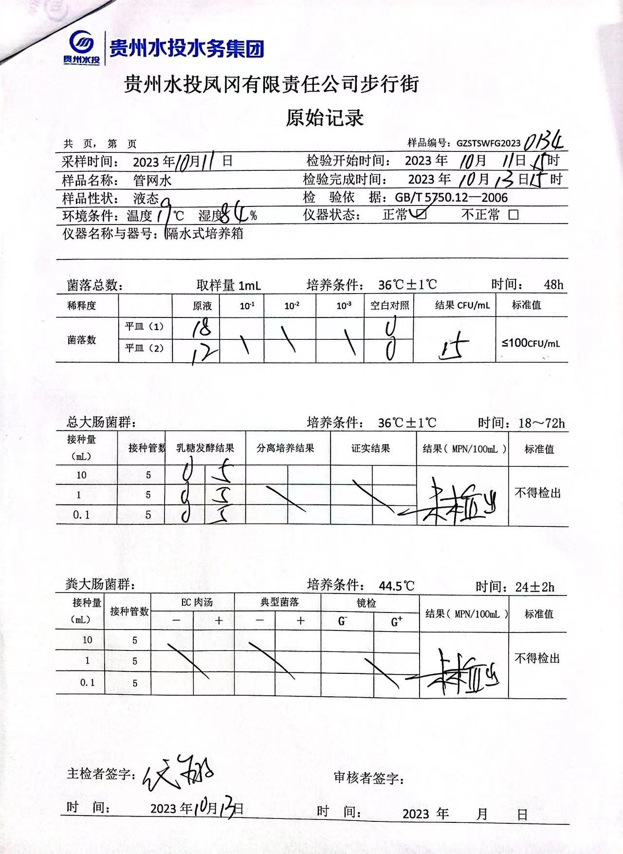 2023年10月城区水质检测报告