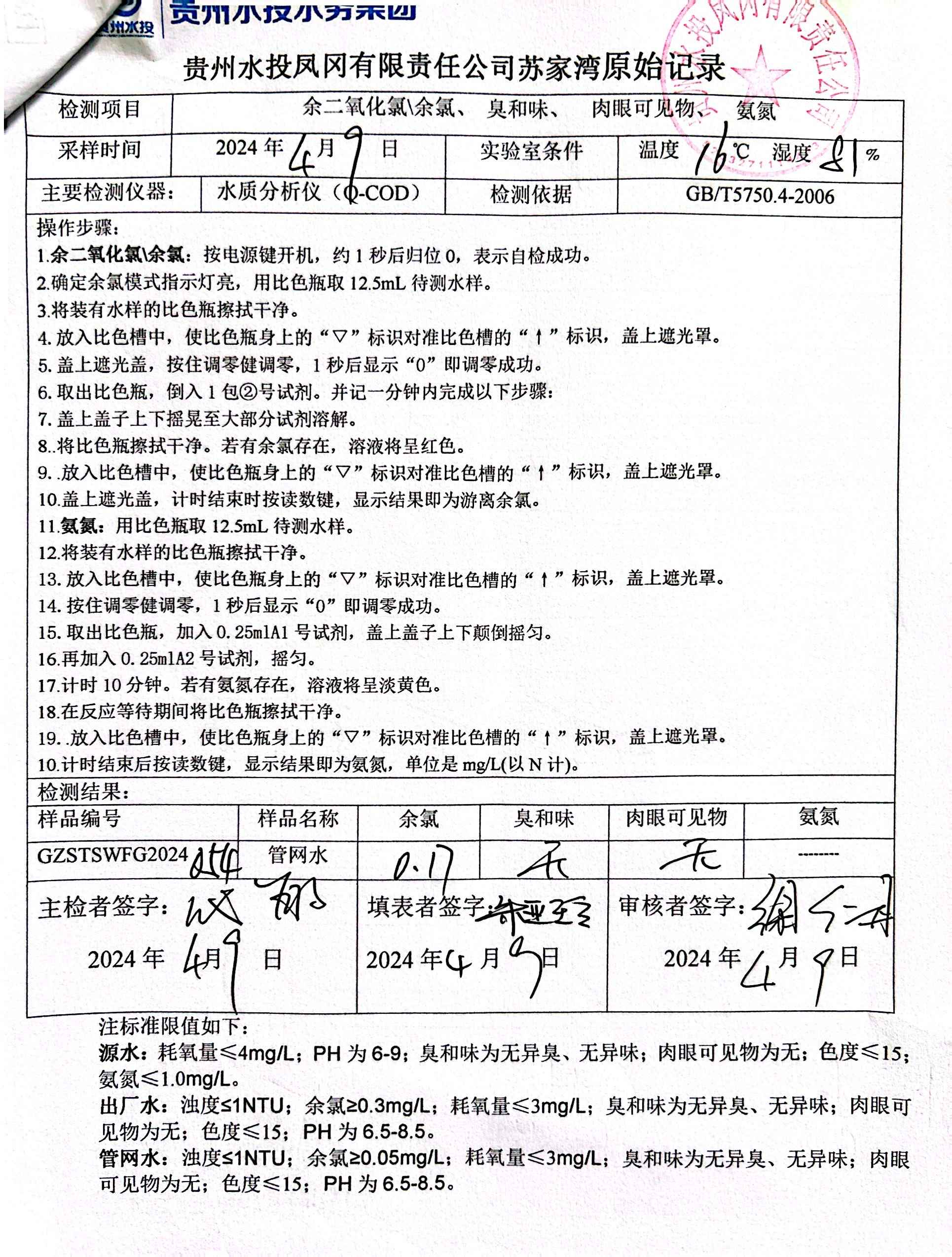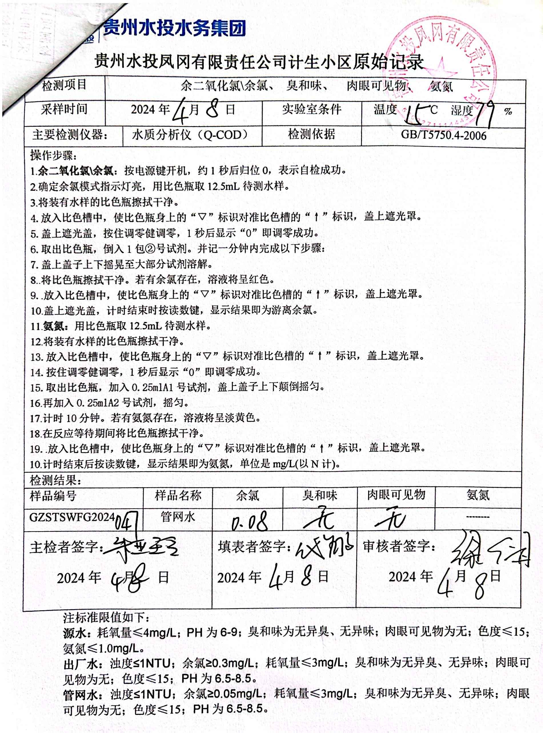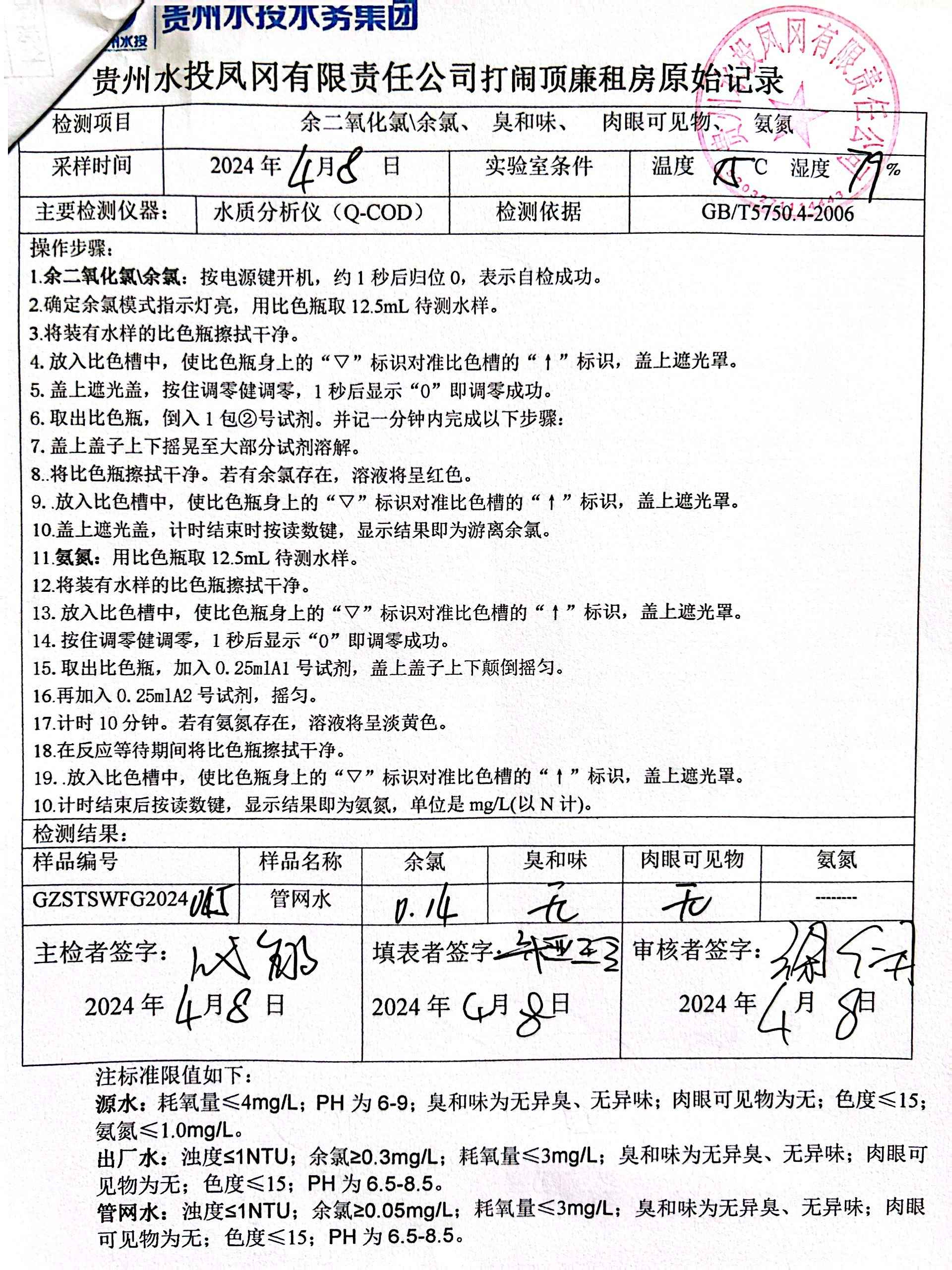 2024年4月二次供水泵房自检记录