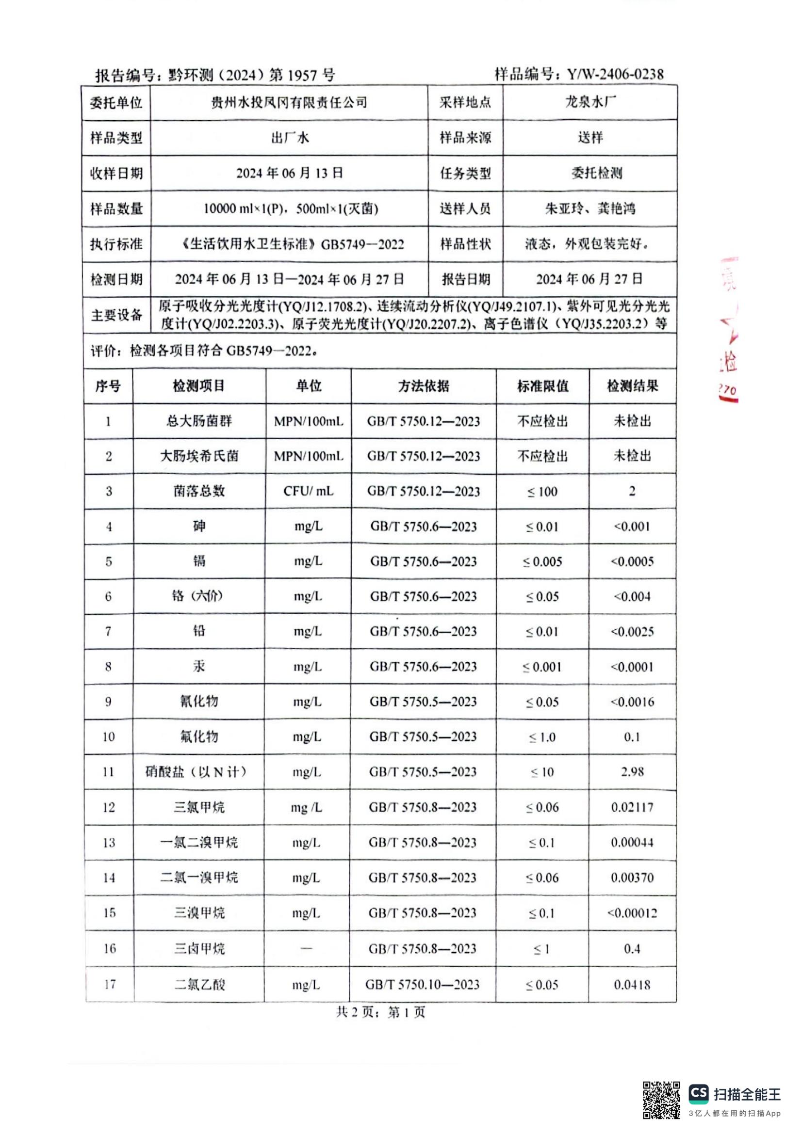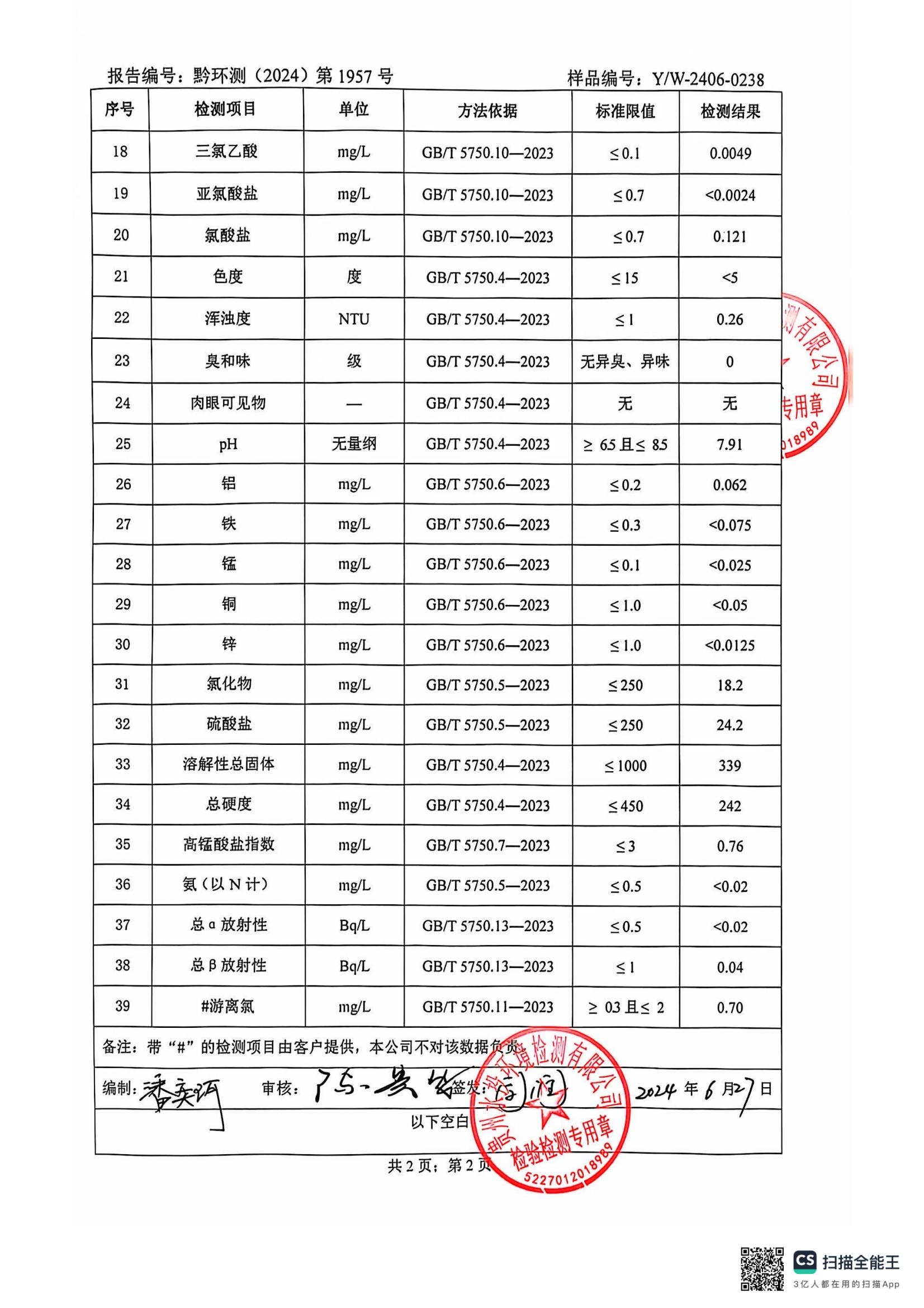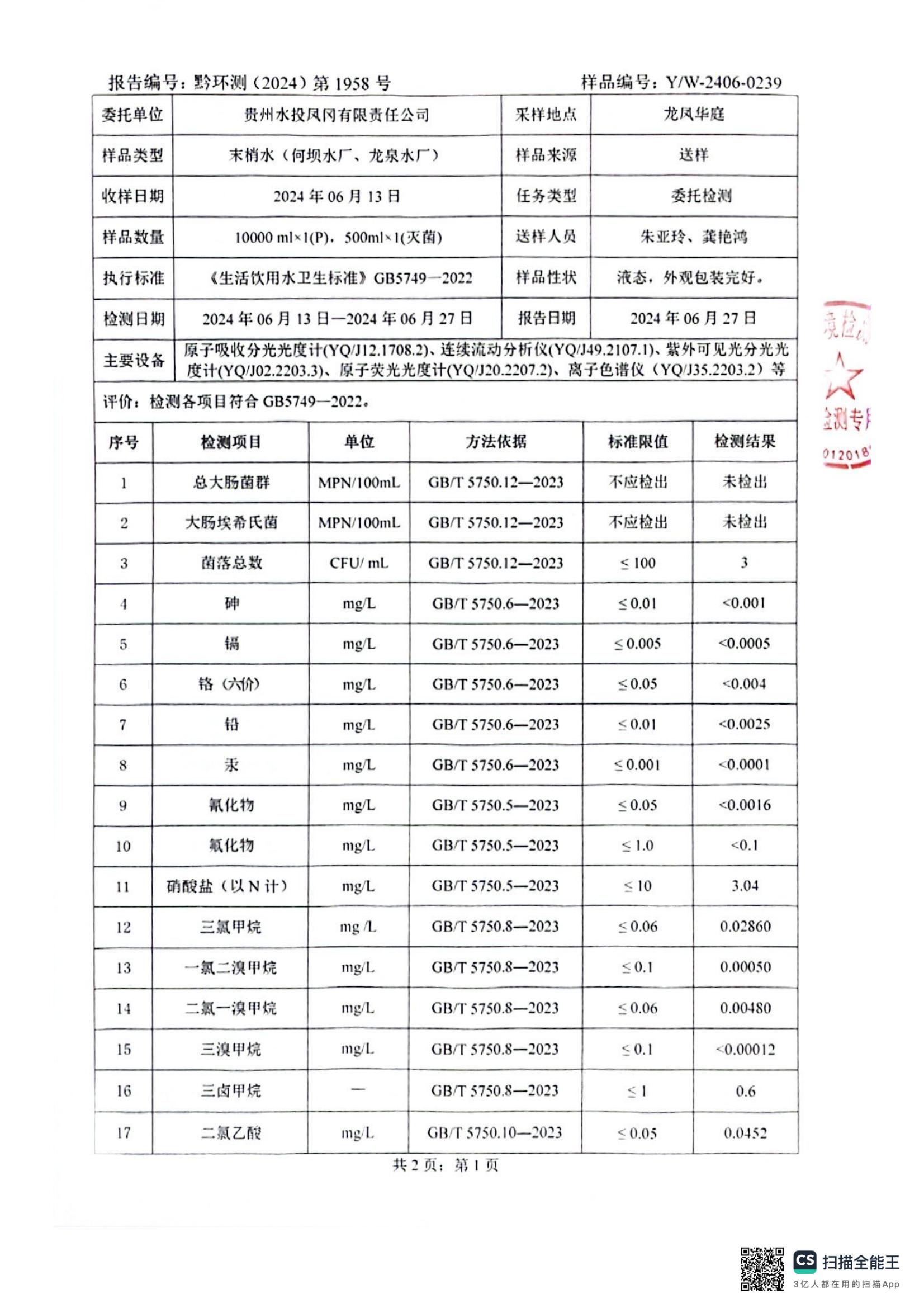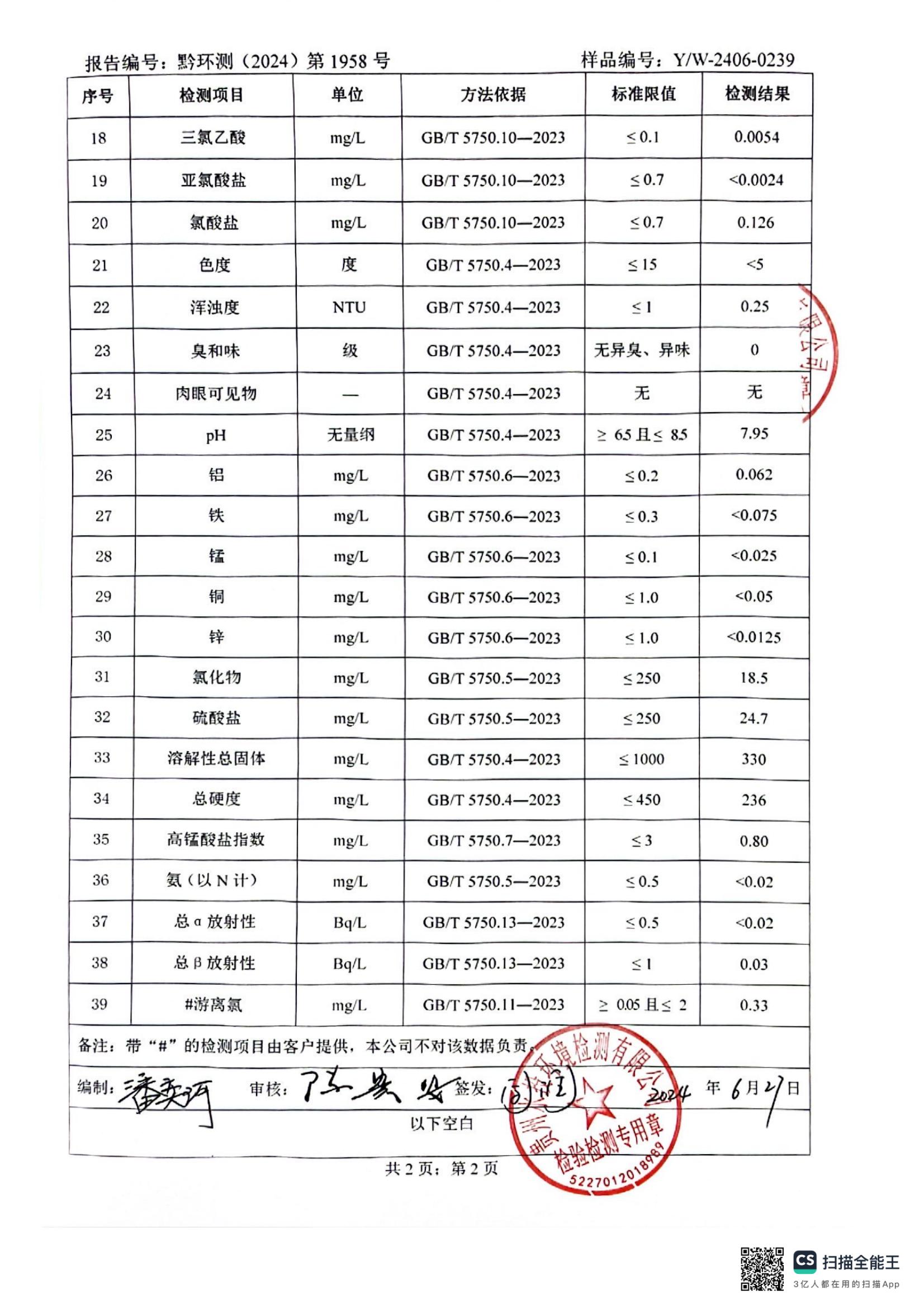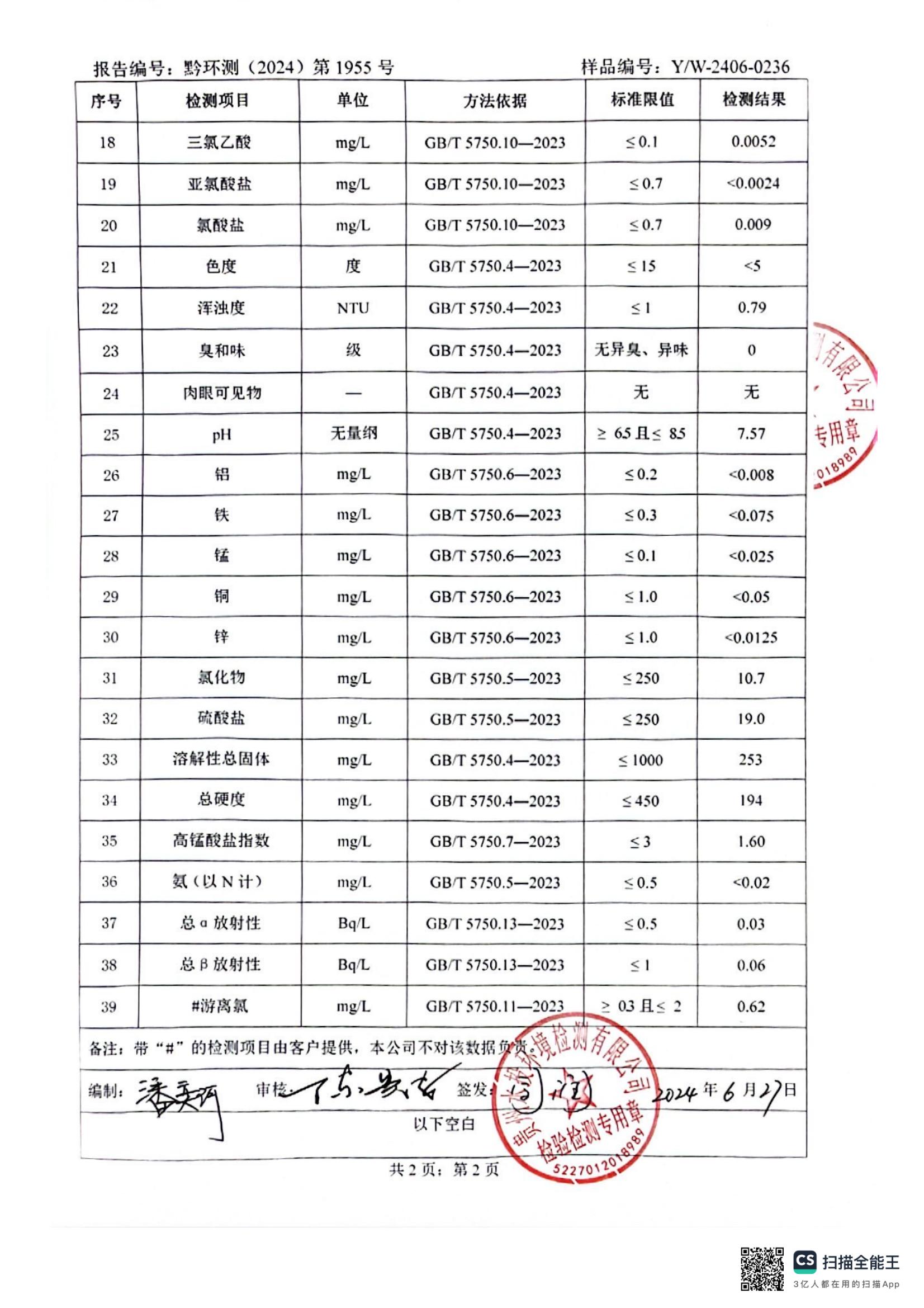水质检测报告