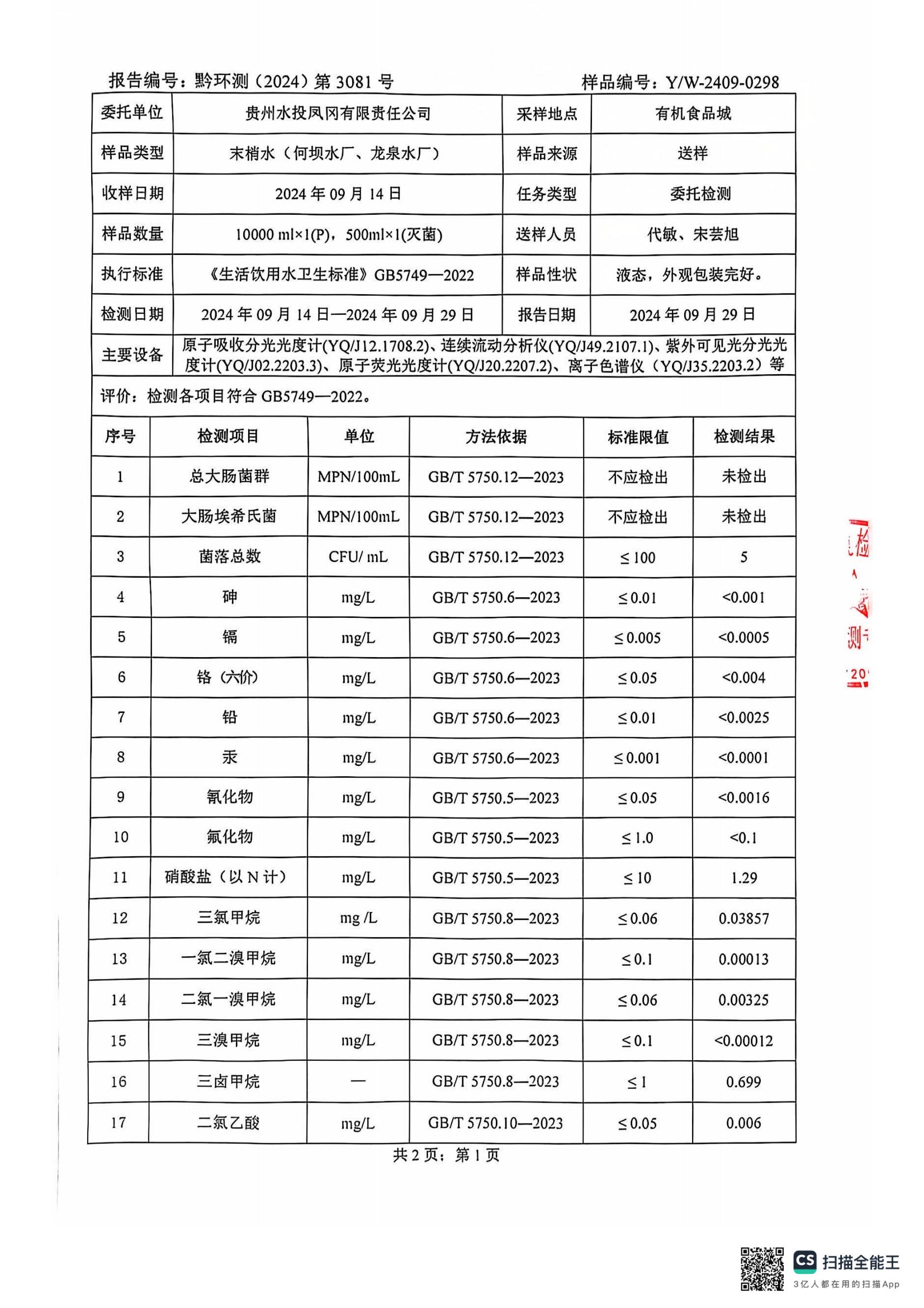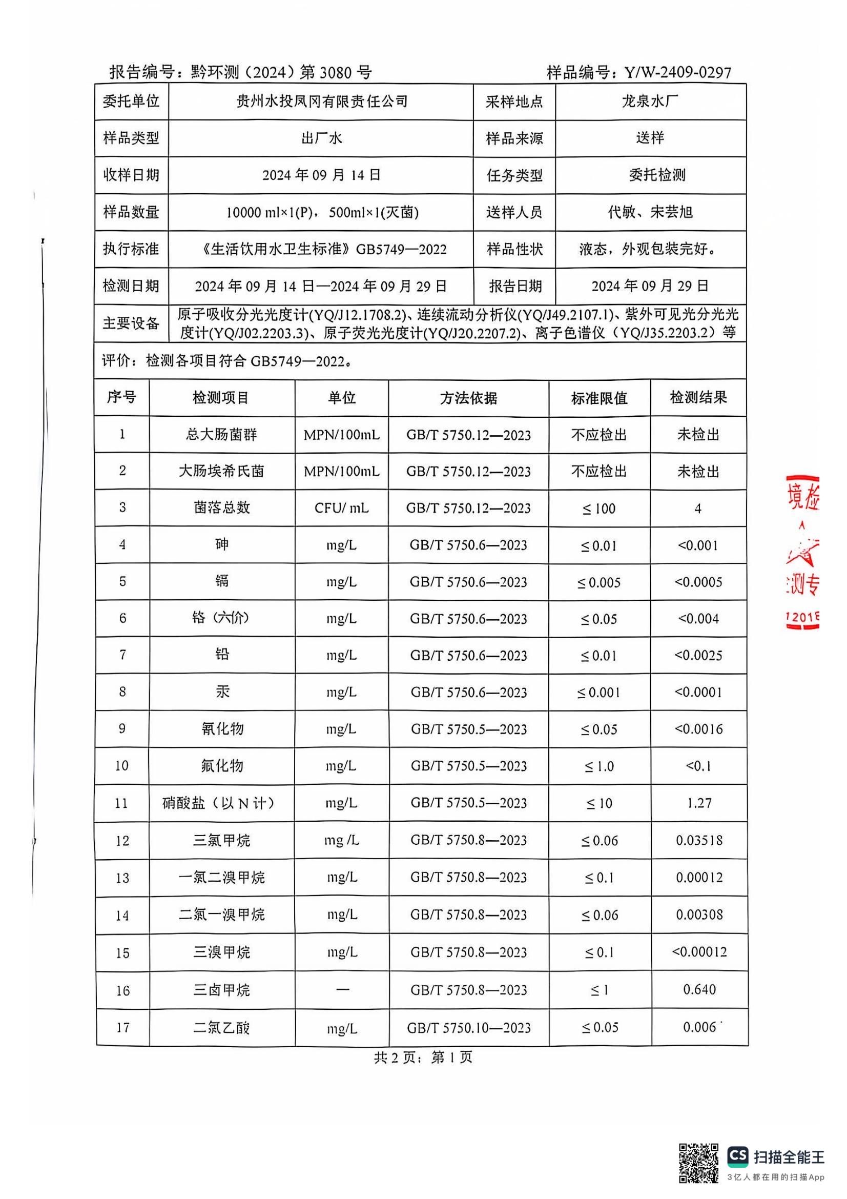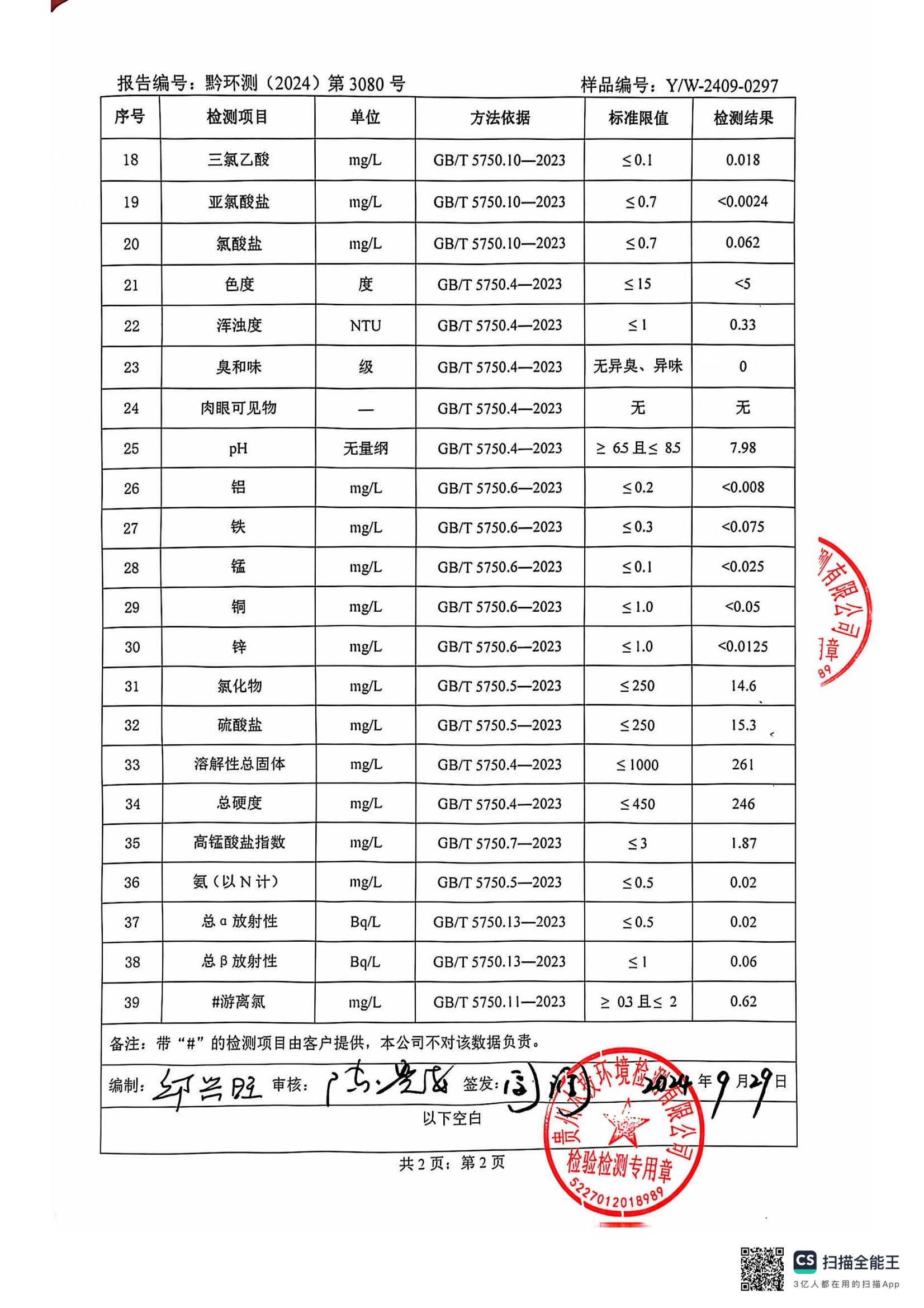 2024年10月城区水质检测报告