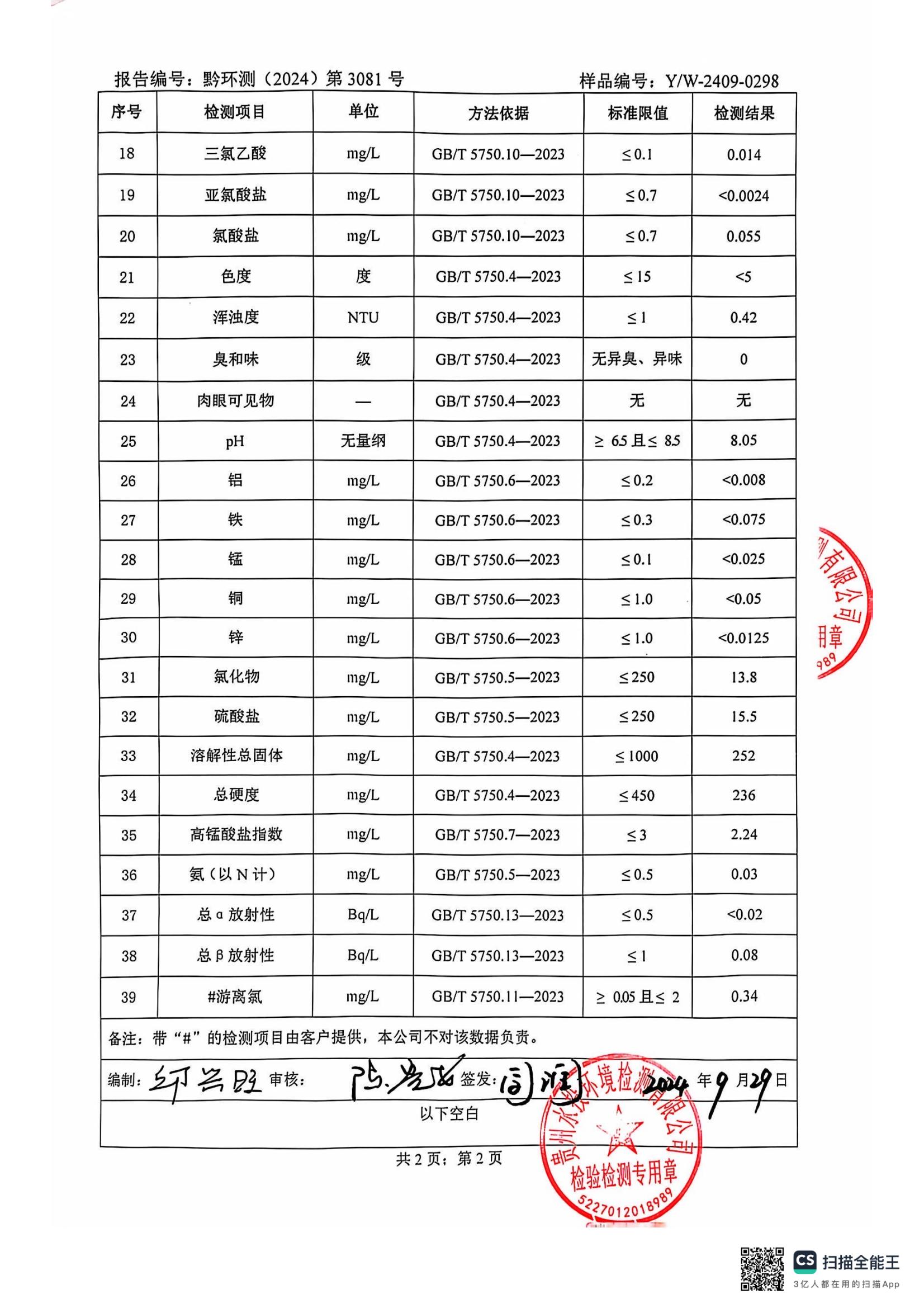 水质检测报告