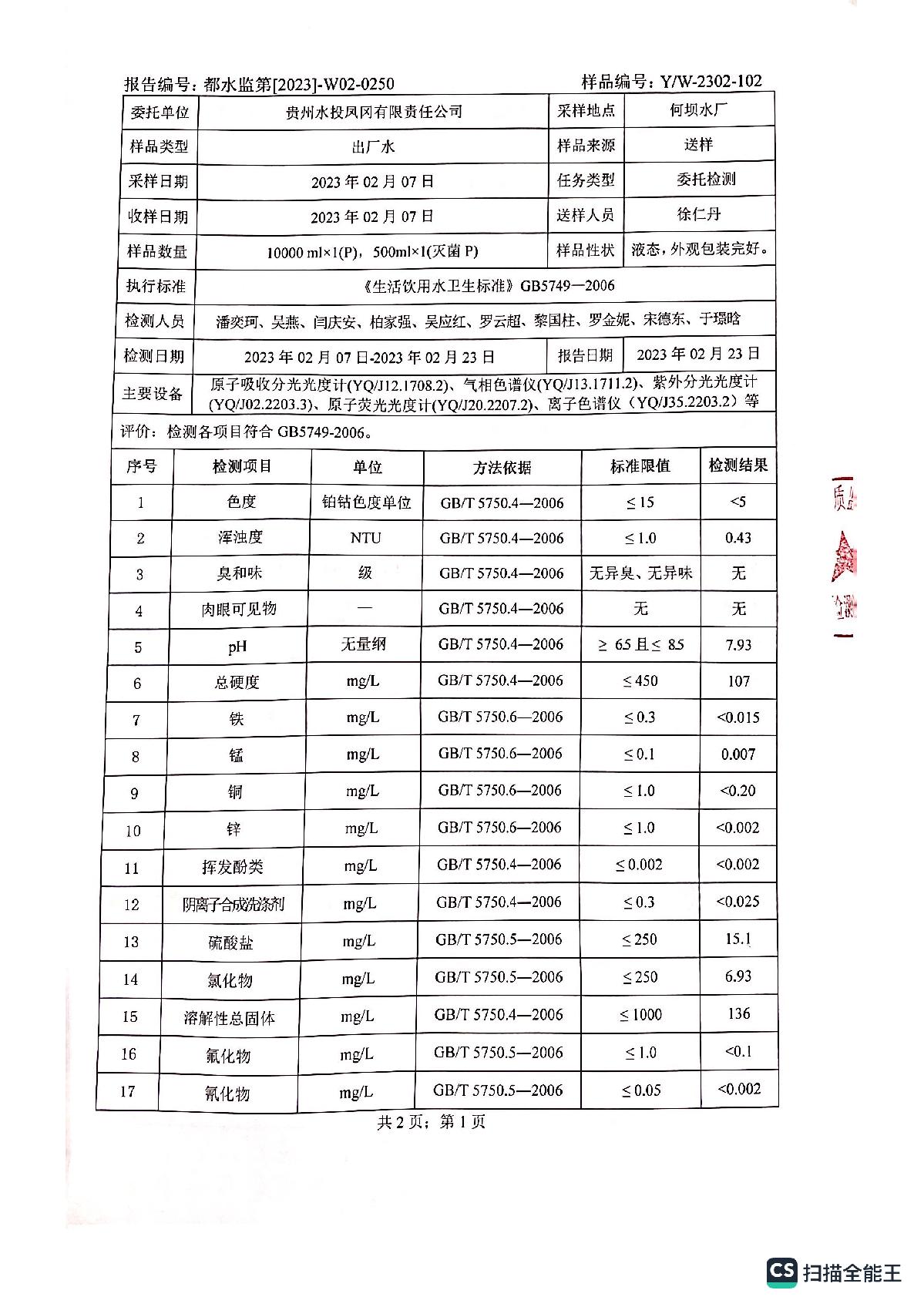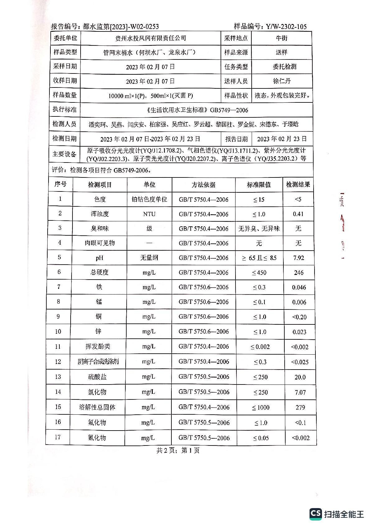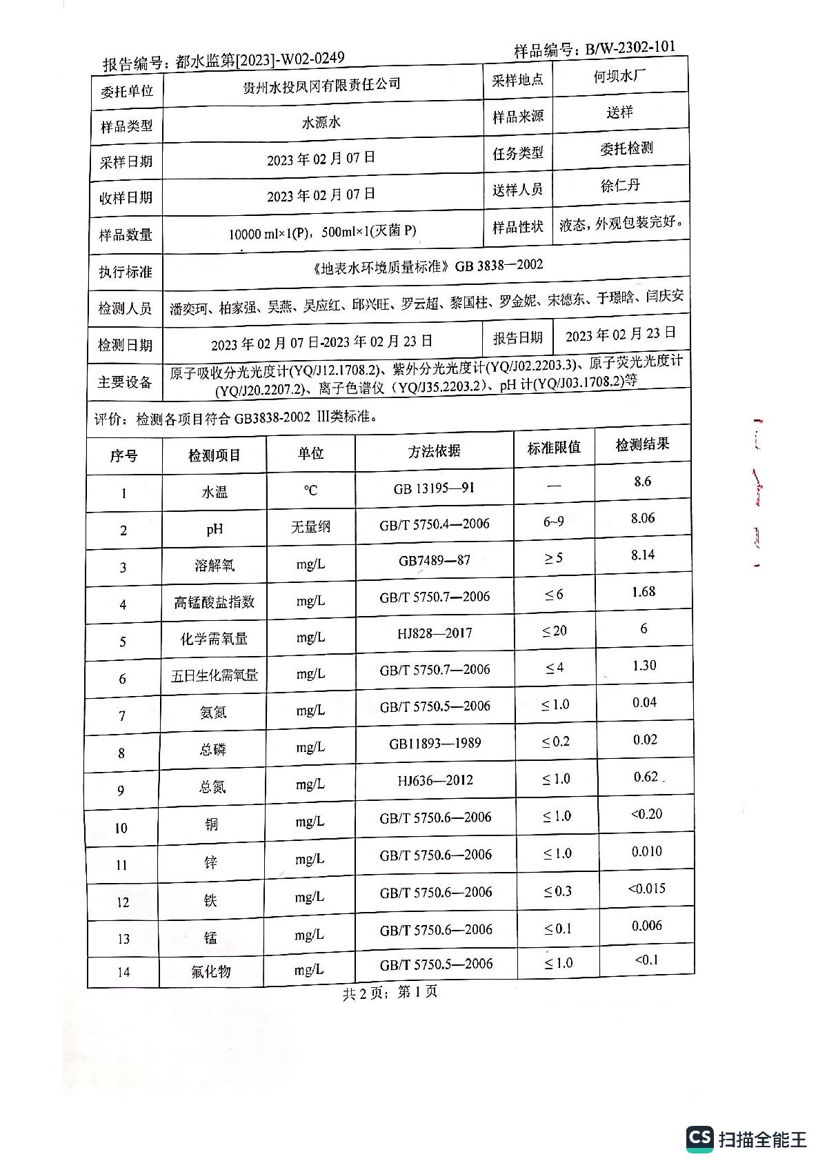 2023年2月何坝、龙泉水厂水质报告