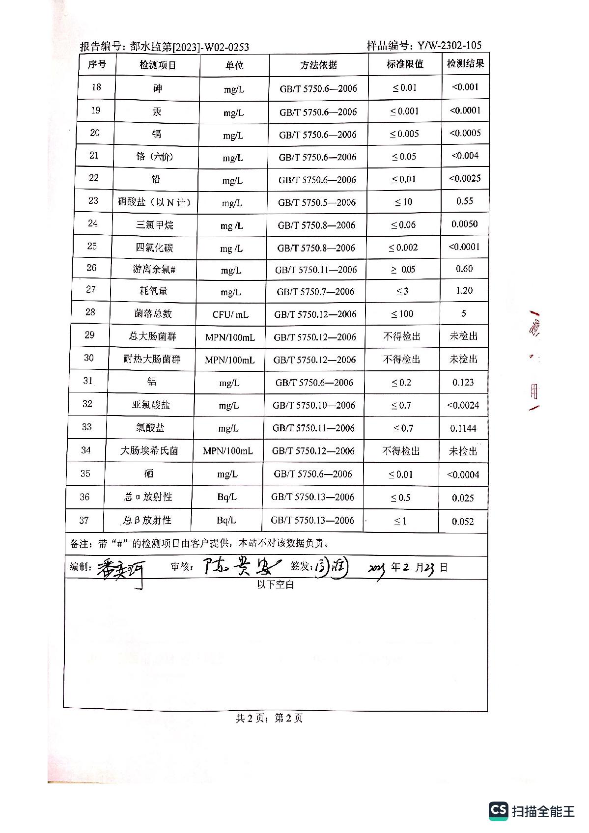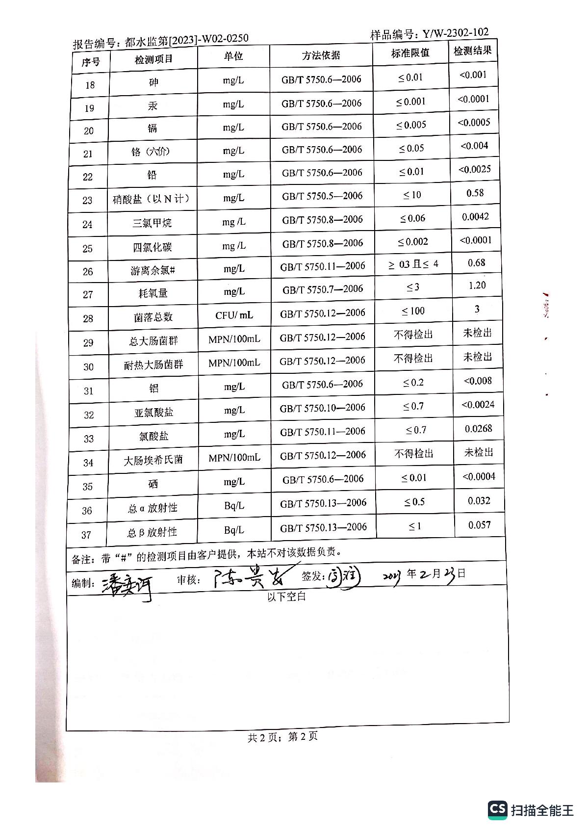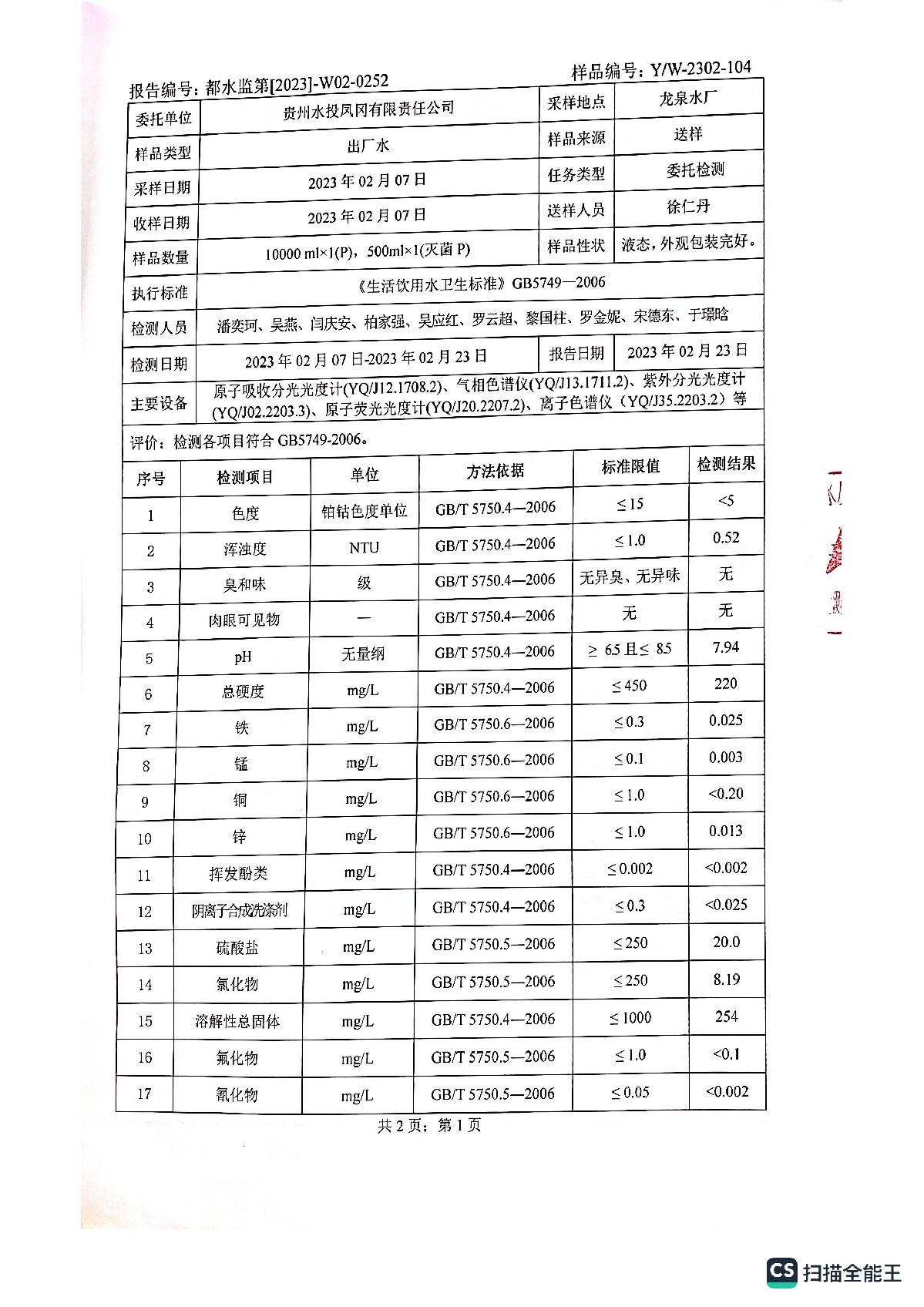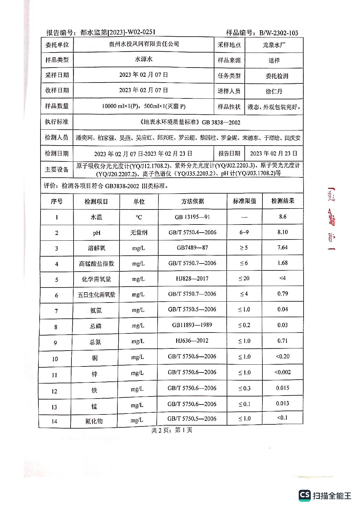 2023年2月何坝、龙泉水厂水质报告