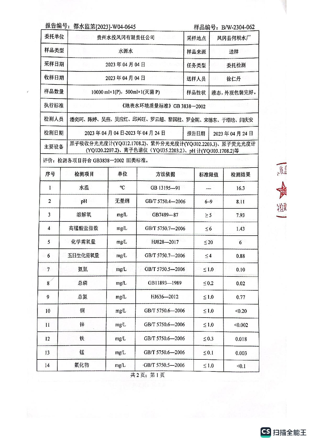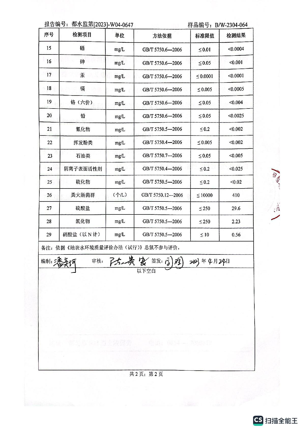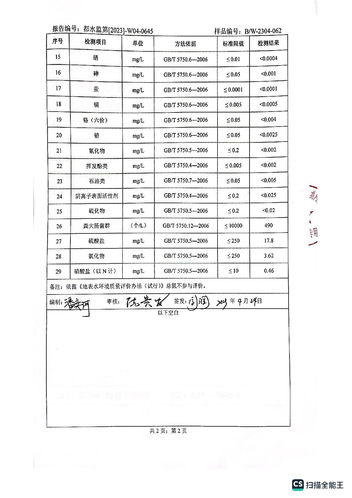 2023年4月城区水质检测报告