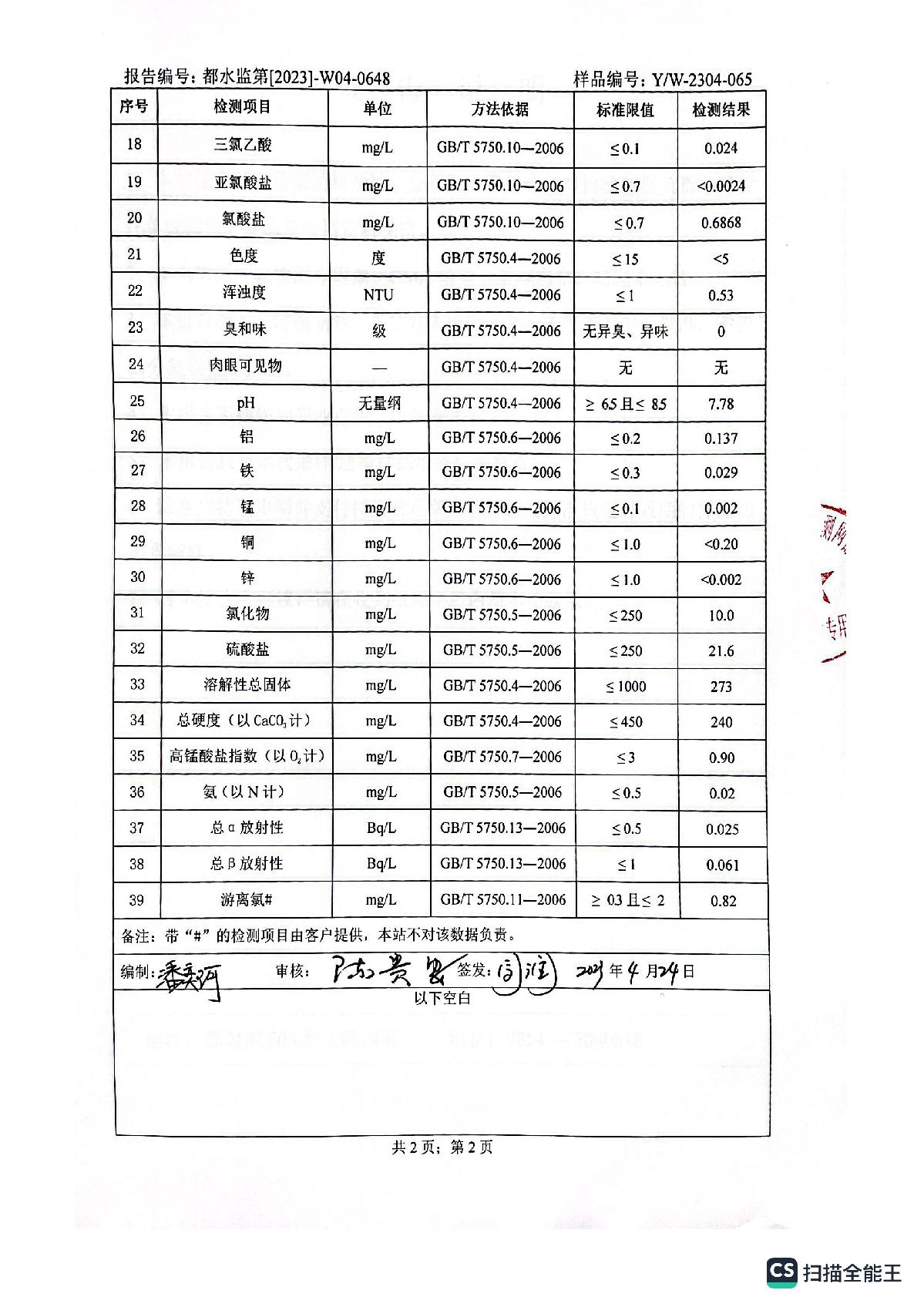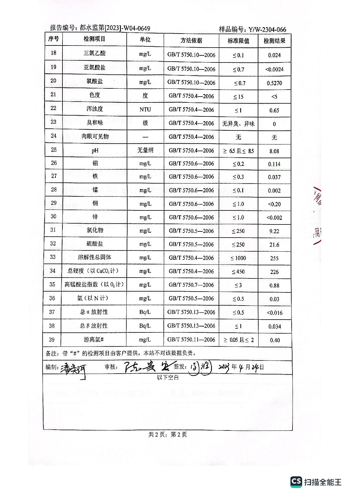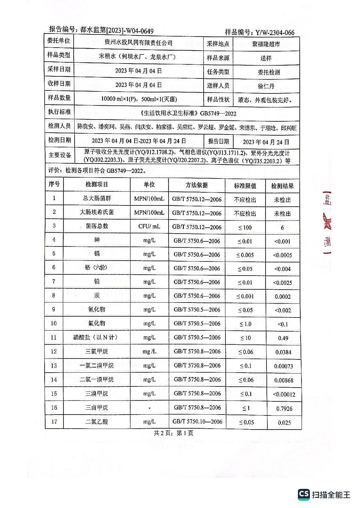 2023年4月城区水质检测报告