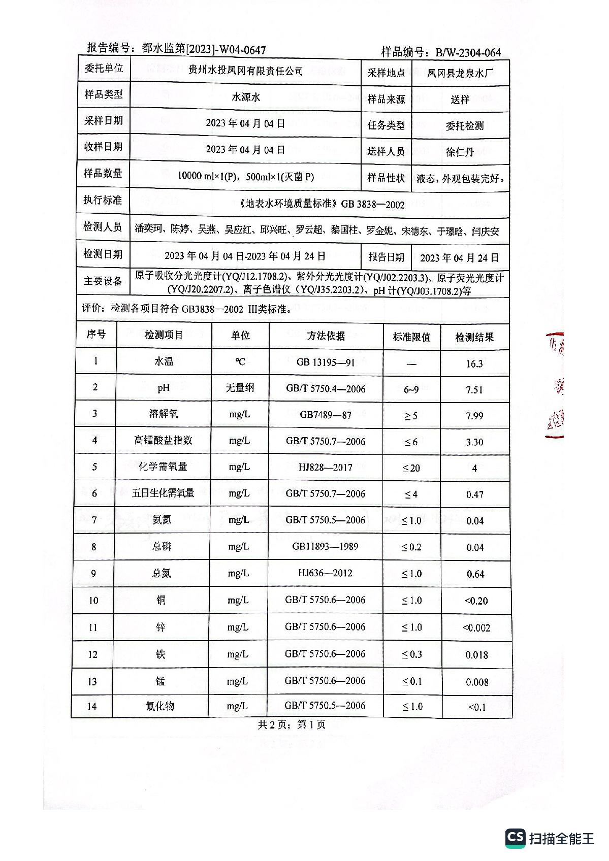 水质检测报告