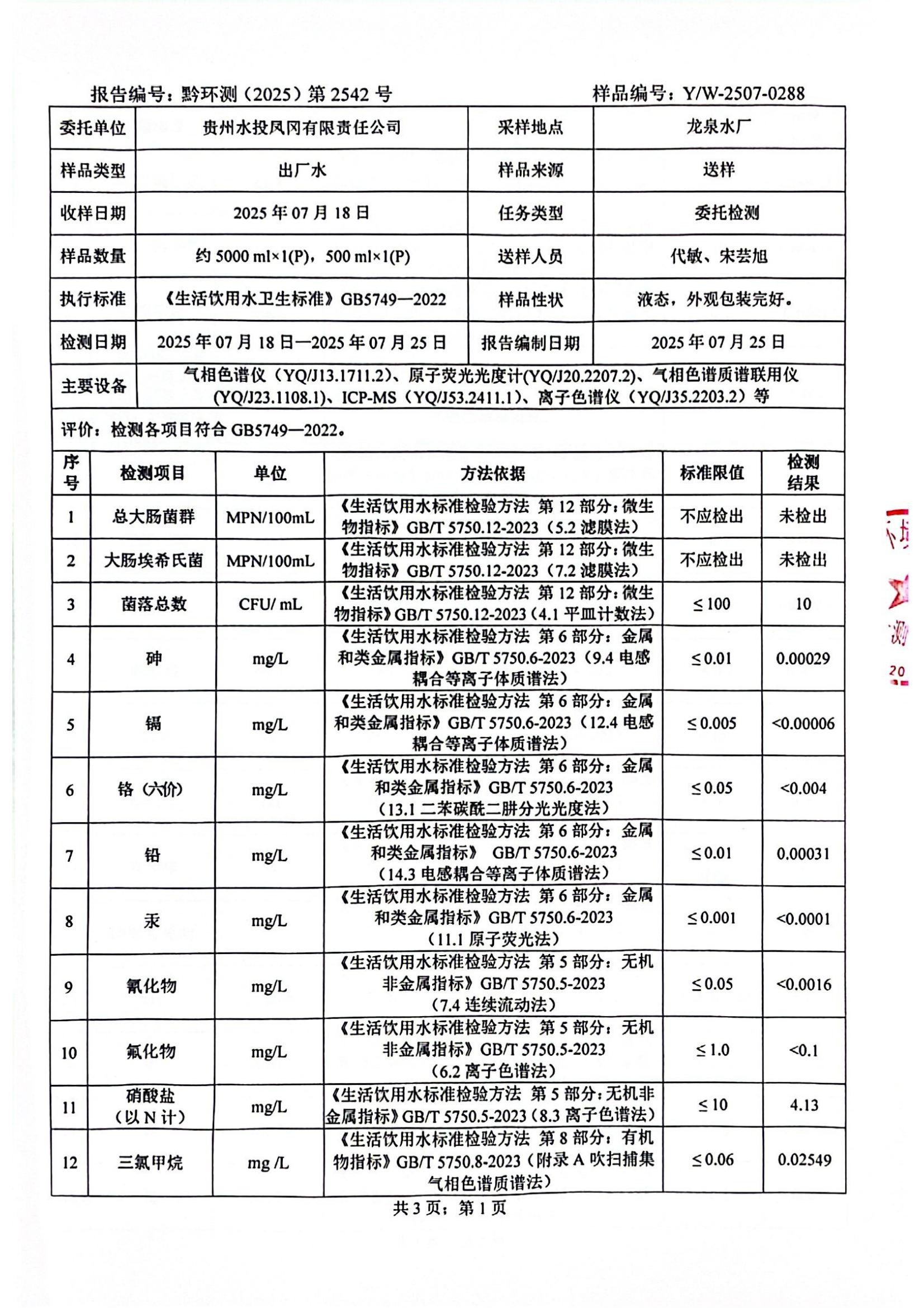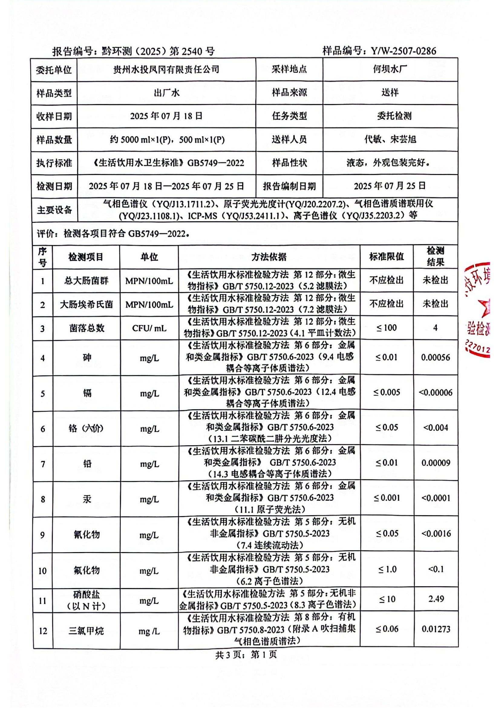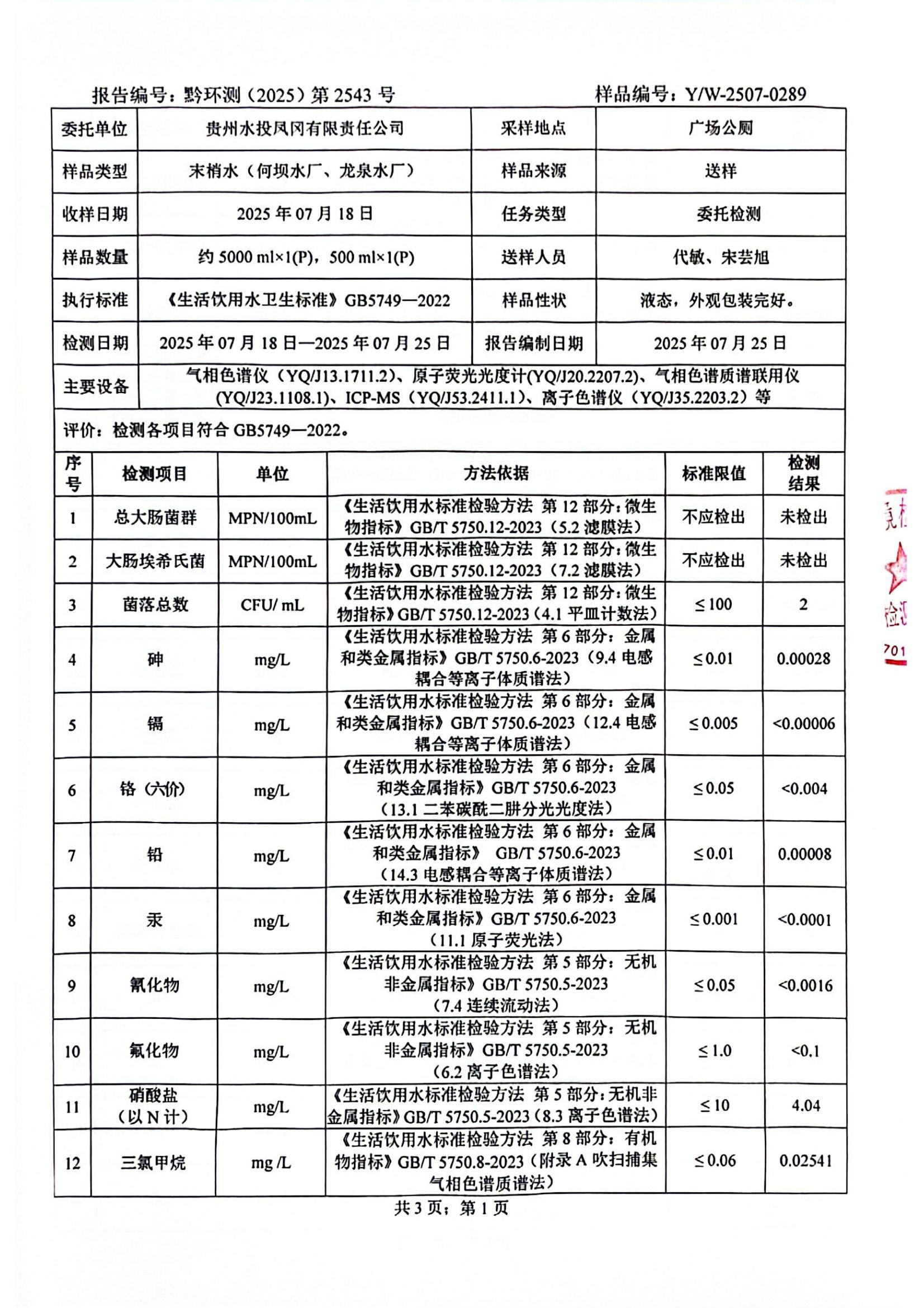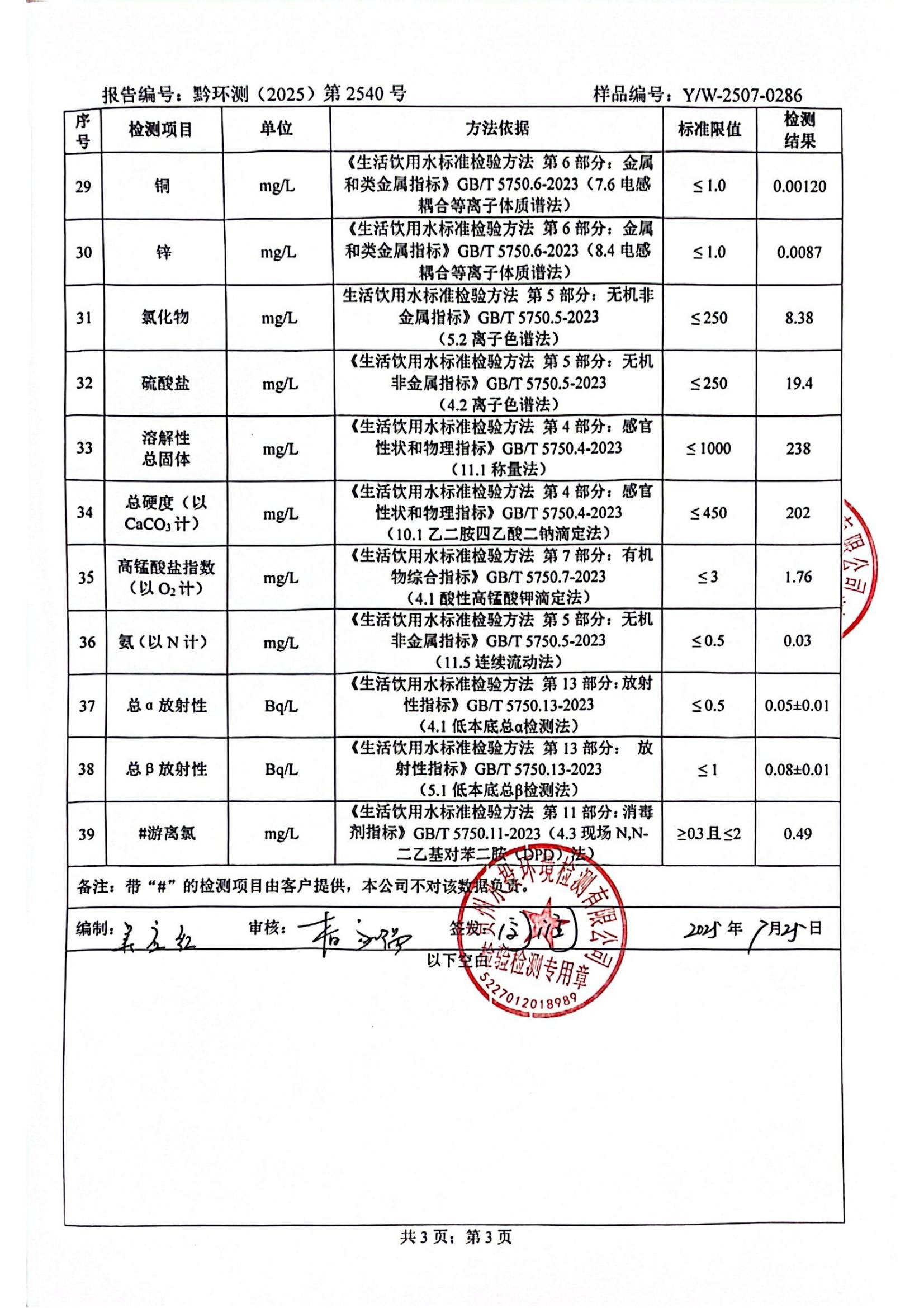 2025年7月城区水质检测报告