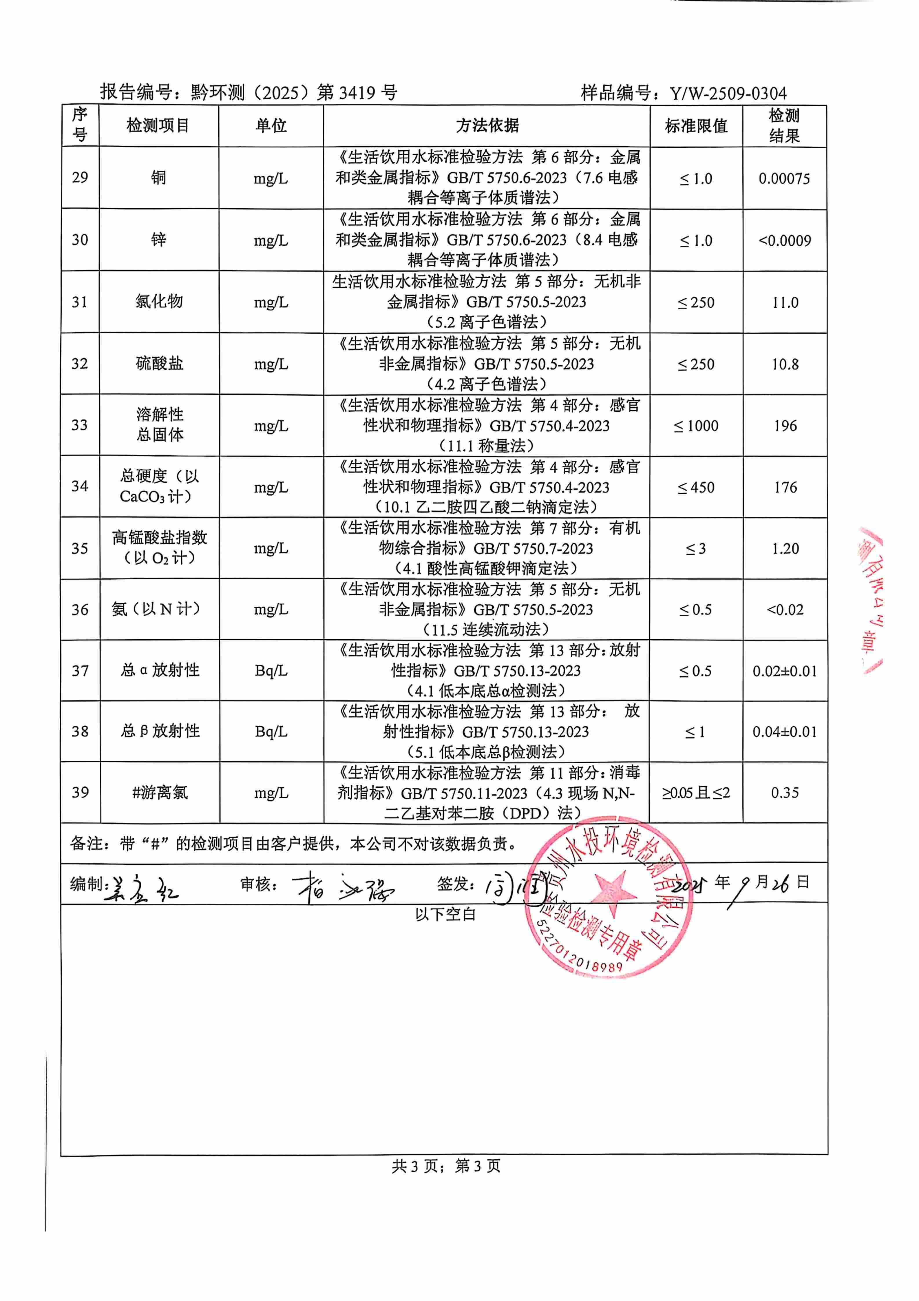 2025年9月城区水质检测报告
