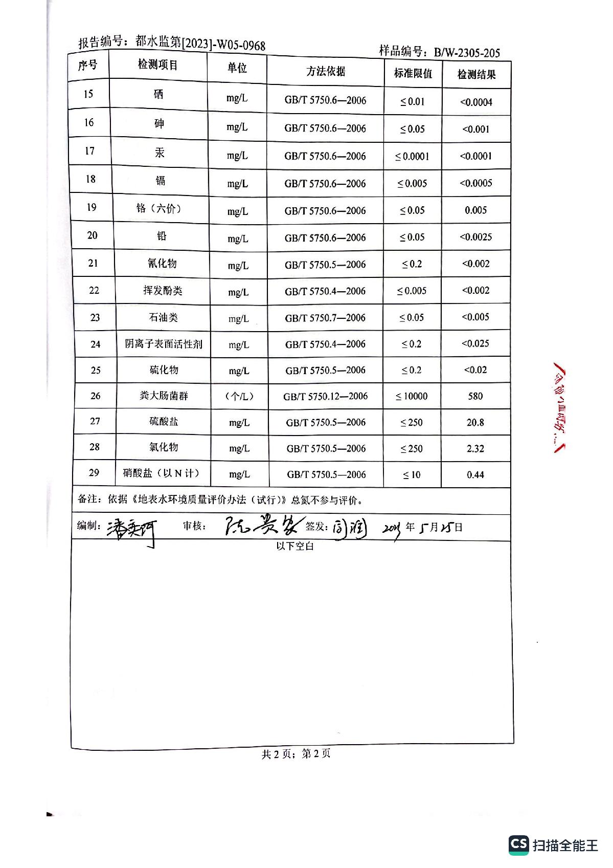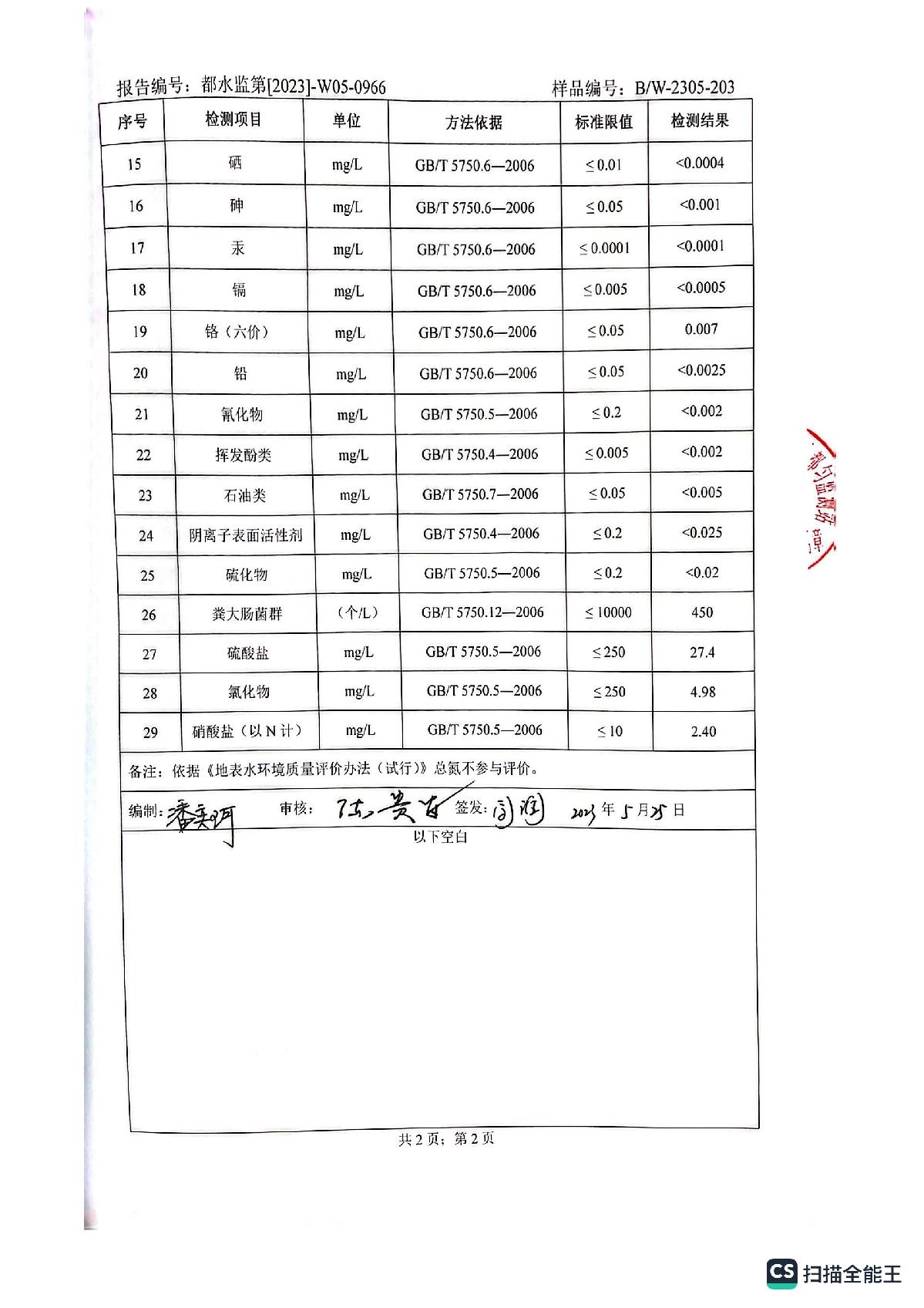 2023年5月城区水质检测报告