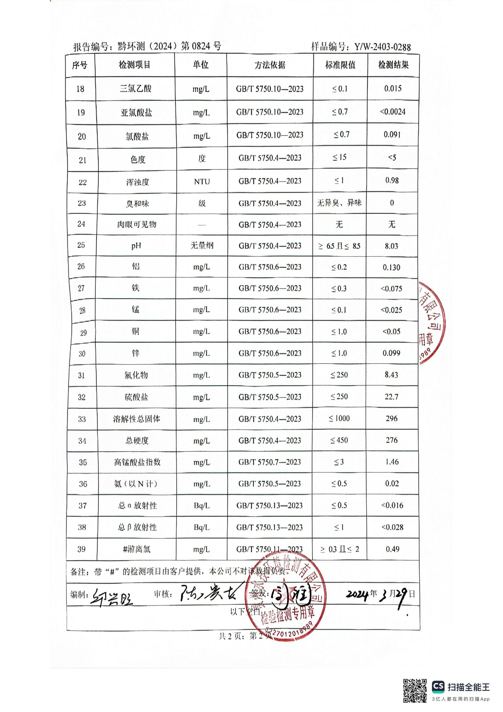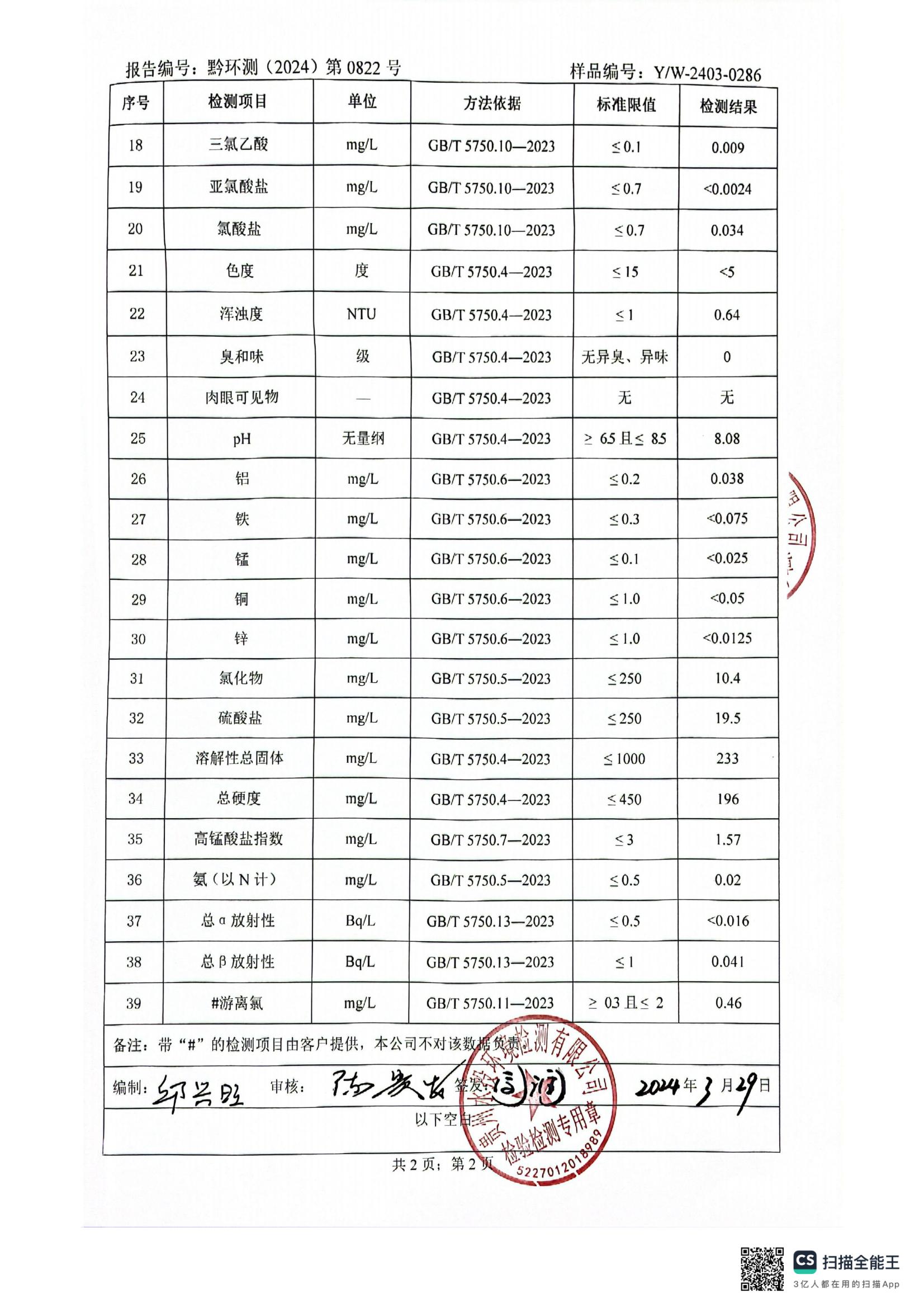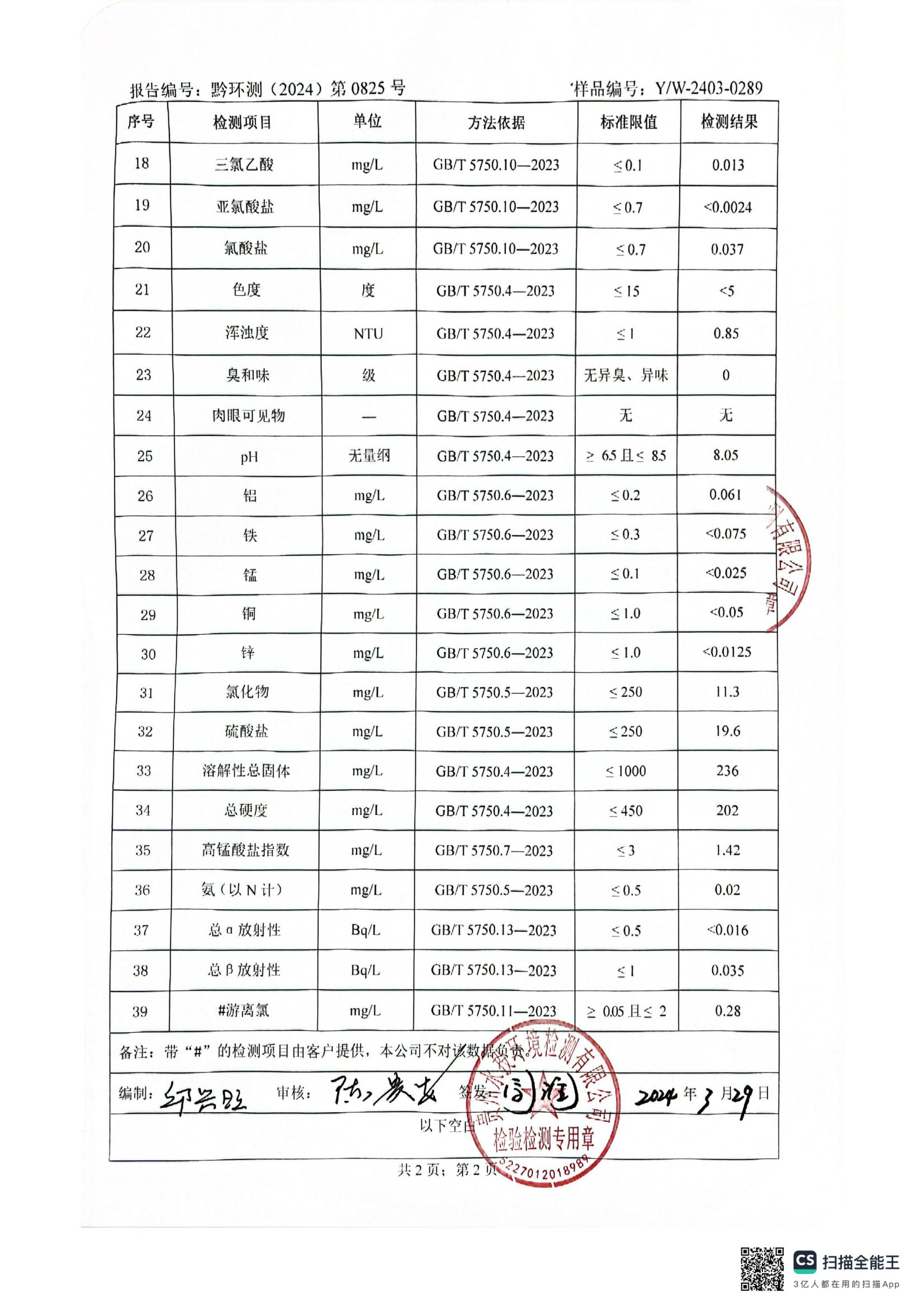 水质检测报告