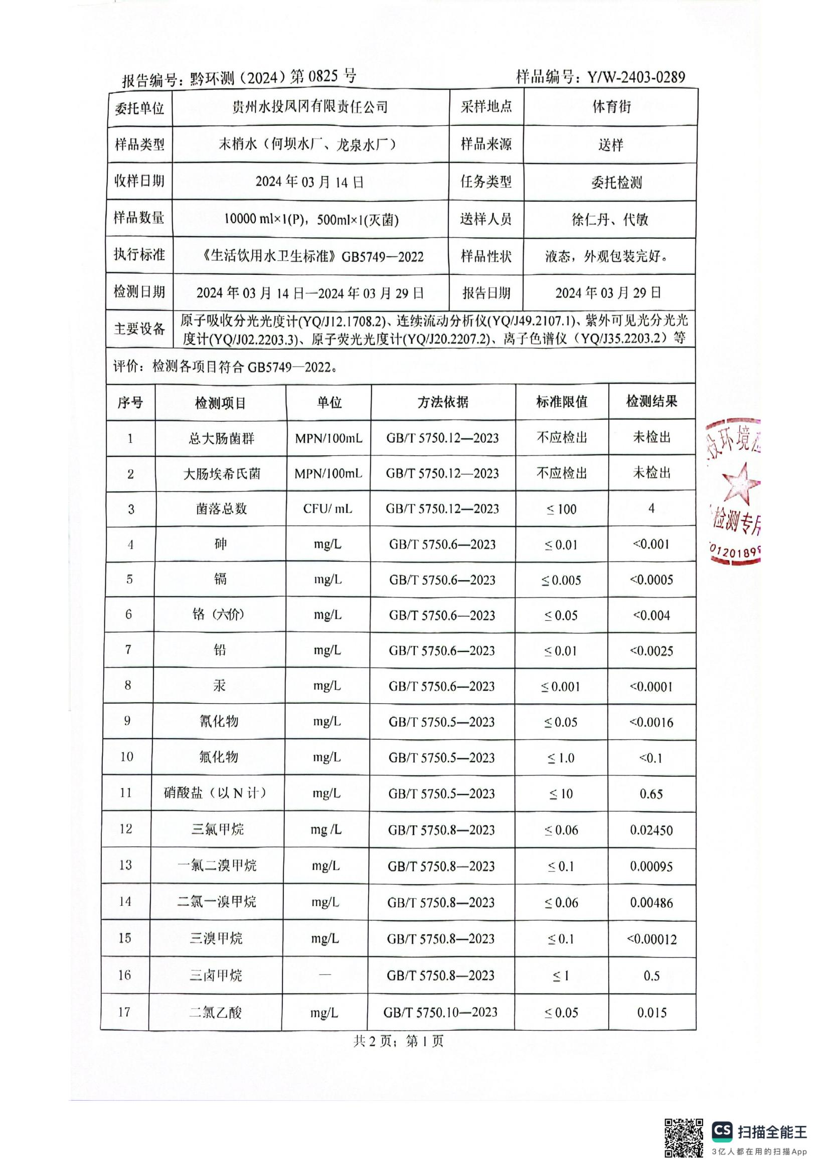2024年3月城区水质检测报告