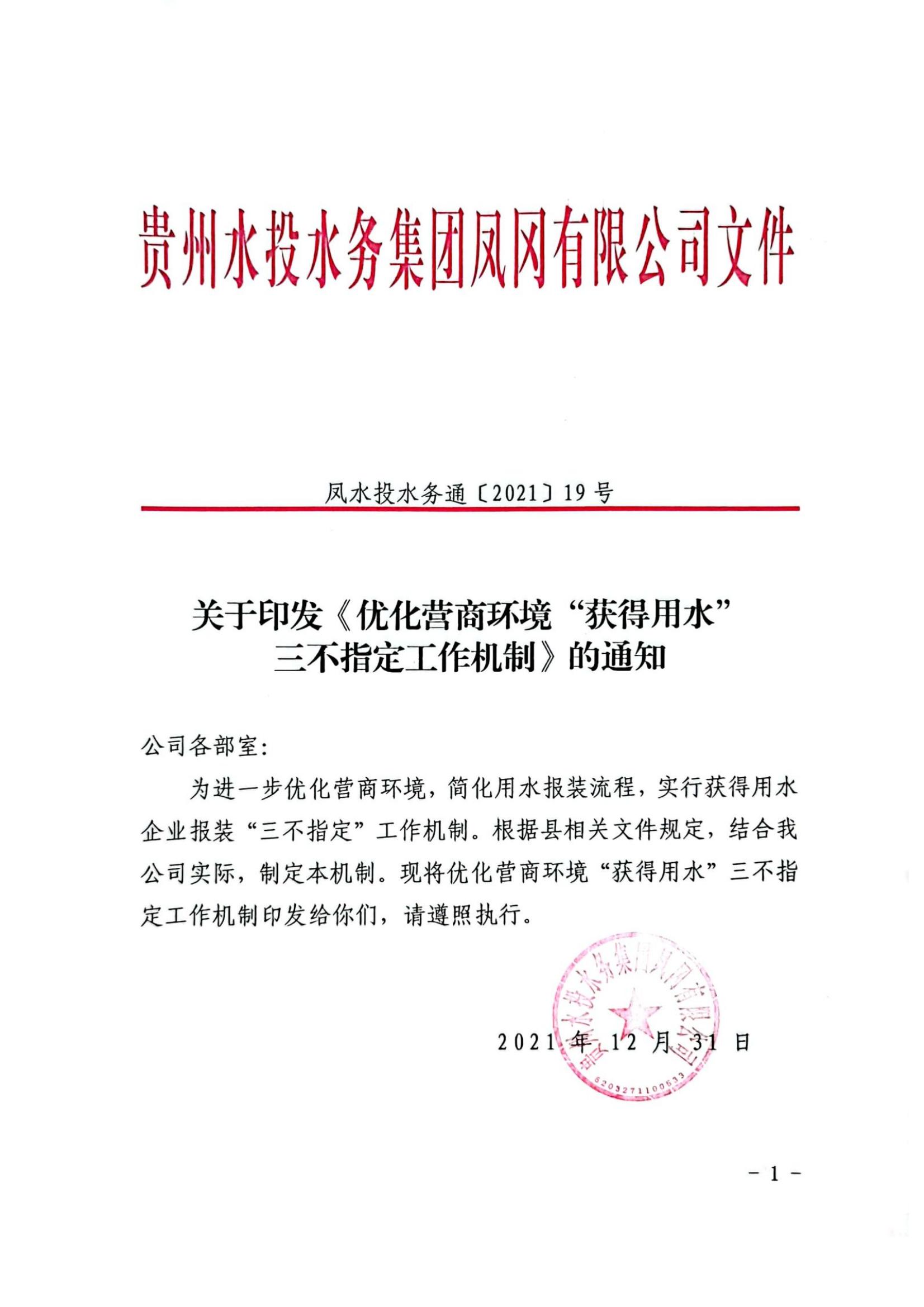 关于印发《优化营商环境“获得用水”三不指定工作机制》的通知